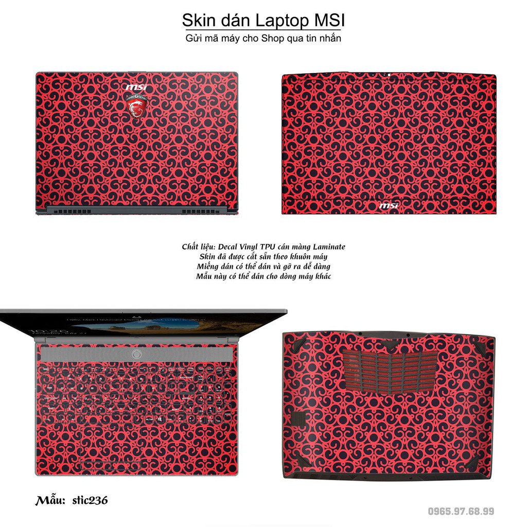Máy tính & Laptop > Phụ Kiện Máy Tính > Miếng Dán & Ốp Laptop || Skin dán Laptop MSI in hình Hoa văn sticker bộ 38 (inbox mã máy cho Shop)Còn hàng