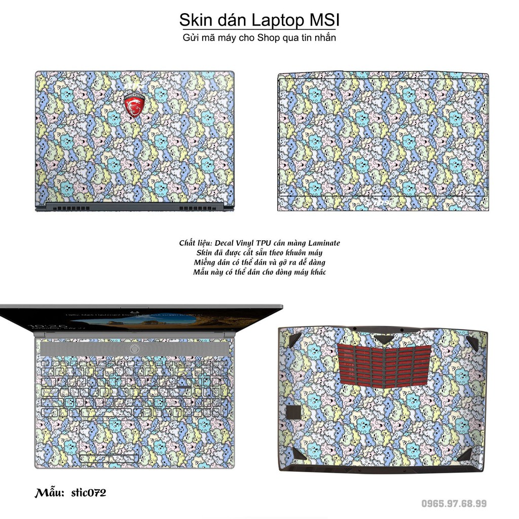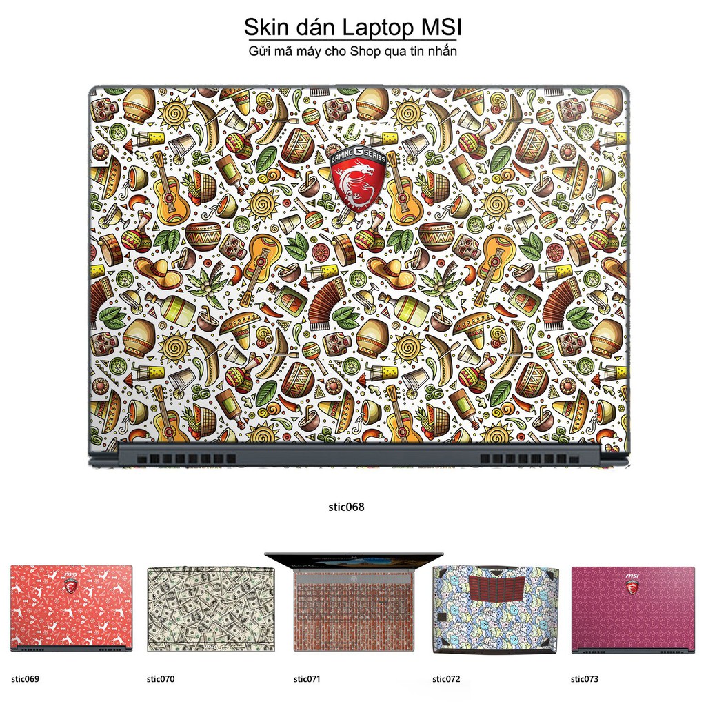 Máy tính & Laptop > Phụ Kiện Máy Tính > Miếng Dán & Ốp Laptop || Skin dán Laptop MSI in hình Hoa văn sticker bộ 12 (inbox mã máy cho Shop)Còn hàng
