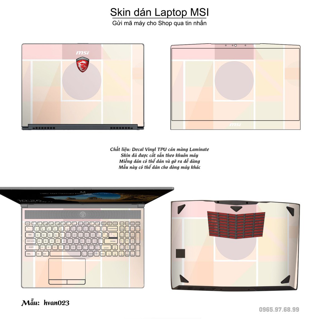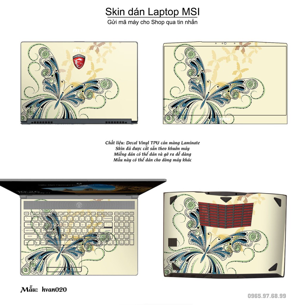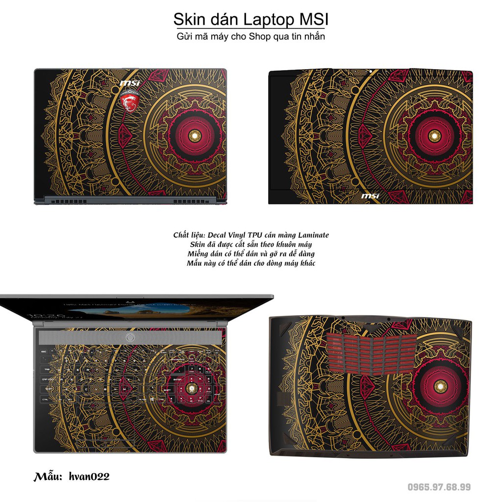 Máy tính & Laptop > Phụ Kiện Máy Tính > Miếng Dán & Ốp Laptop || Skin dán Laptop MSI in hình Hoa văn bộ 4 (inbox mã máy cho Shop)Còn hàng