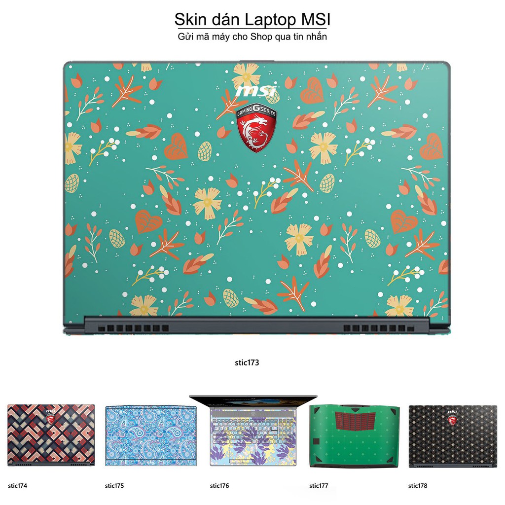 Máy tính & Laptop > Phụ Kiện Máy Tính > Miếng Dán & Ốp Laptop || Skin dán Laptop MSI in hình Hoa văn sticker bộ 29 (inbox mã máy cho Shop)Còn hàng