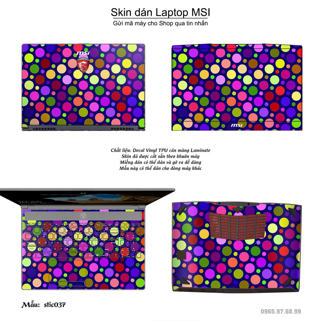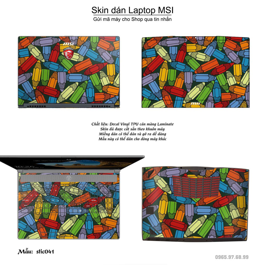 Máy tính & Laptop > Phụ Kiện Máy Tính > Miếng Dán & Ốp Laptop || Skin dán Laptop MSI in hình Hoa văn sticker bộ 7 (inbox mã máy cho Shop)Còn hàng
