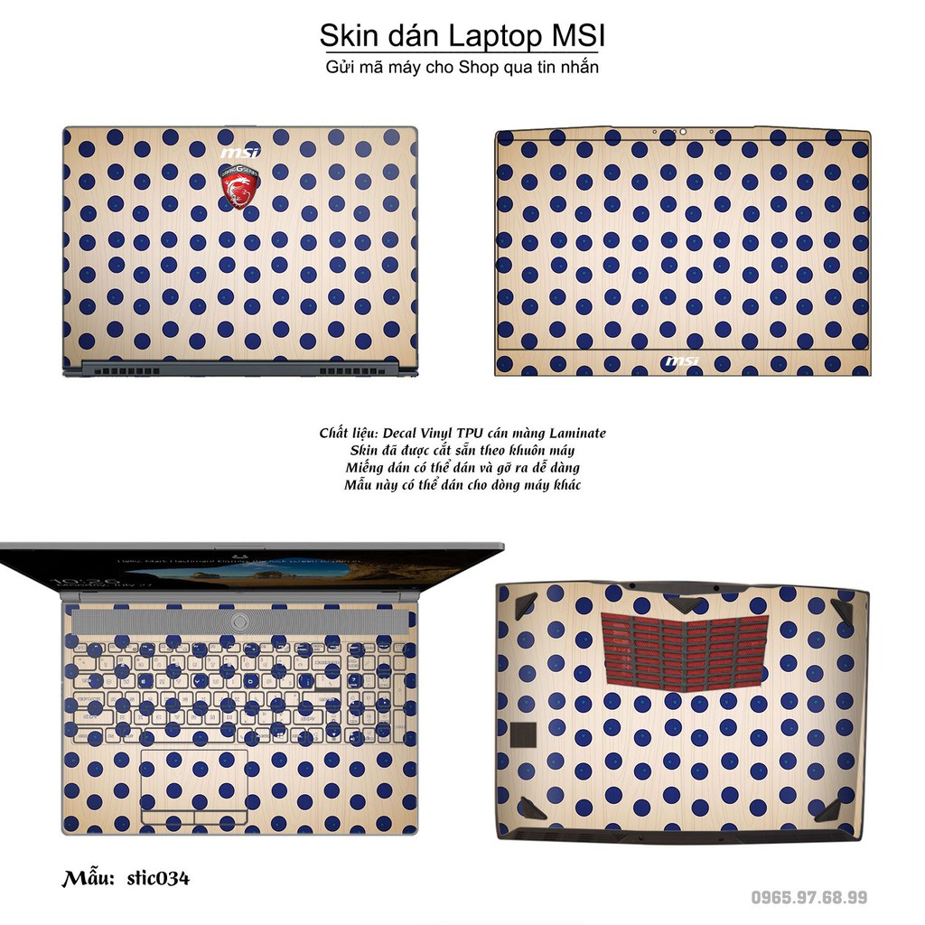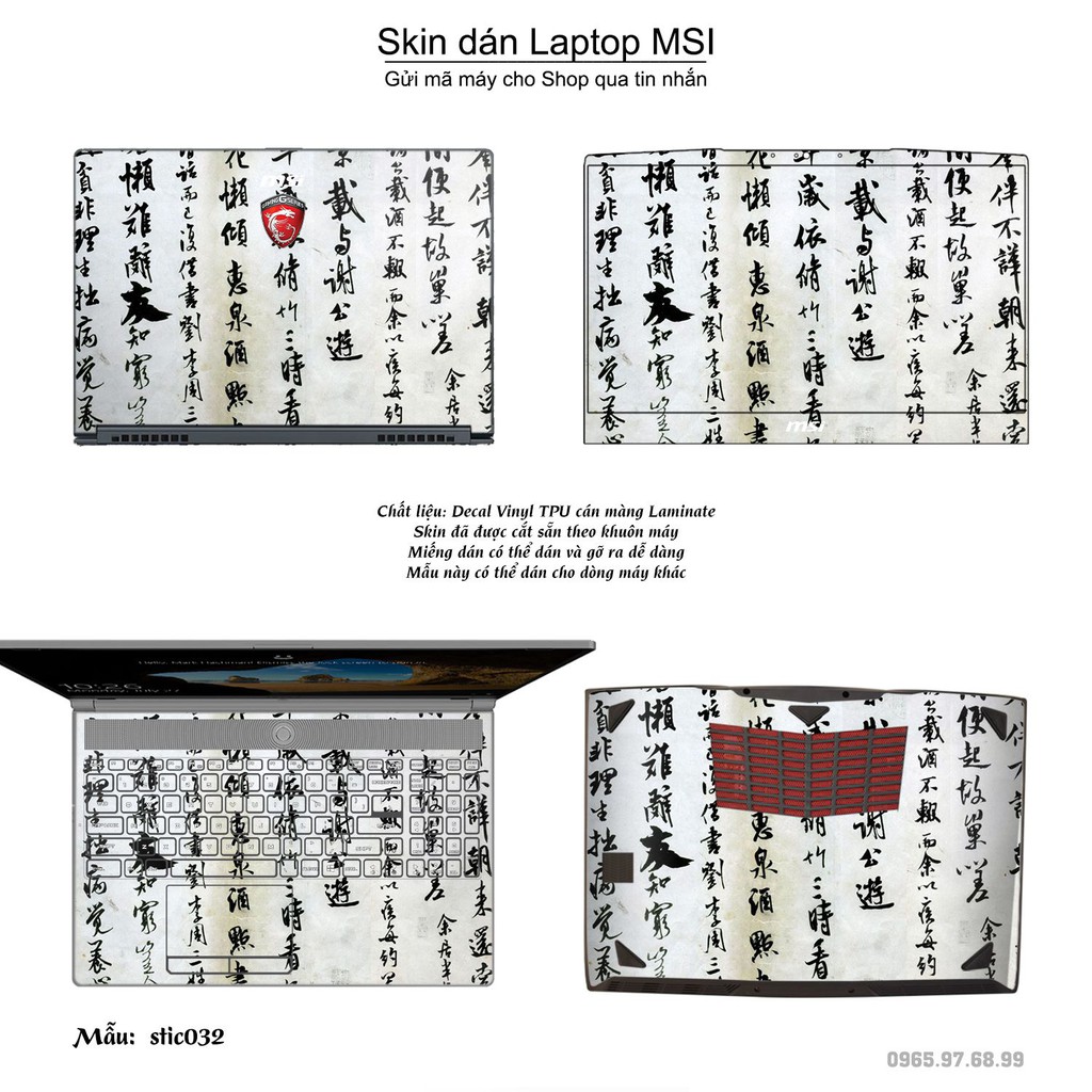 Máy tính & Laptop > Phụ Kiện Máy Tính > Miếng Dán & Ốp Laptop || Skin dán Laptop MSI in hình Hoa văn sticker bộ 6 (inbox mã máy cho Shop)Còn hàng