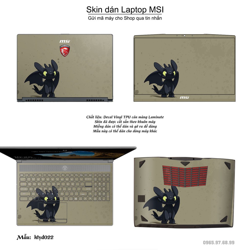 Máy tính & Laptop > Phụ Kiện Máy Tính > Miếng Dán & Ốp Laptop || Skin dán Laptop MSI in hình How To Train Your Dragon (inbox mã máy cho Shop)Còn hàng