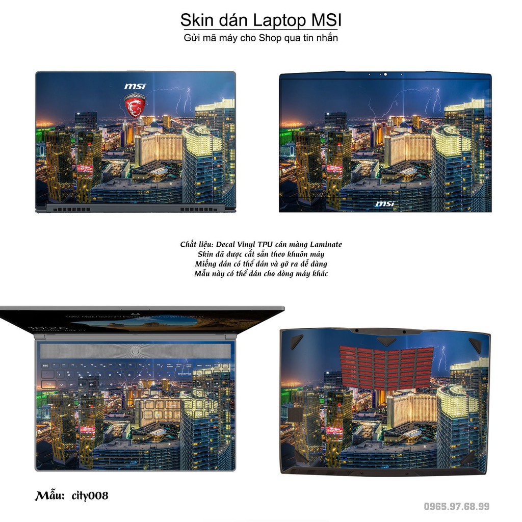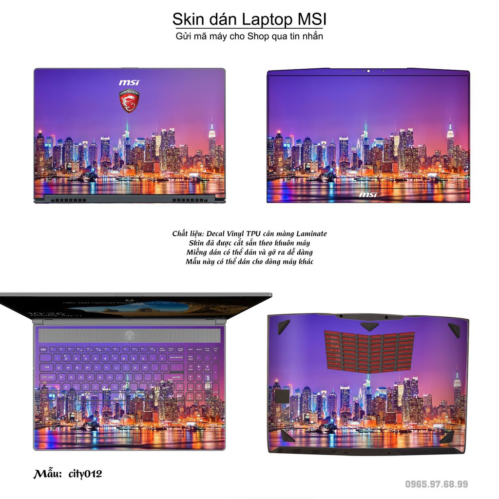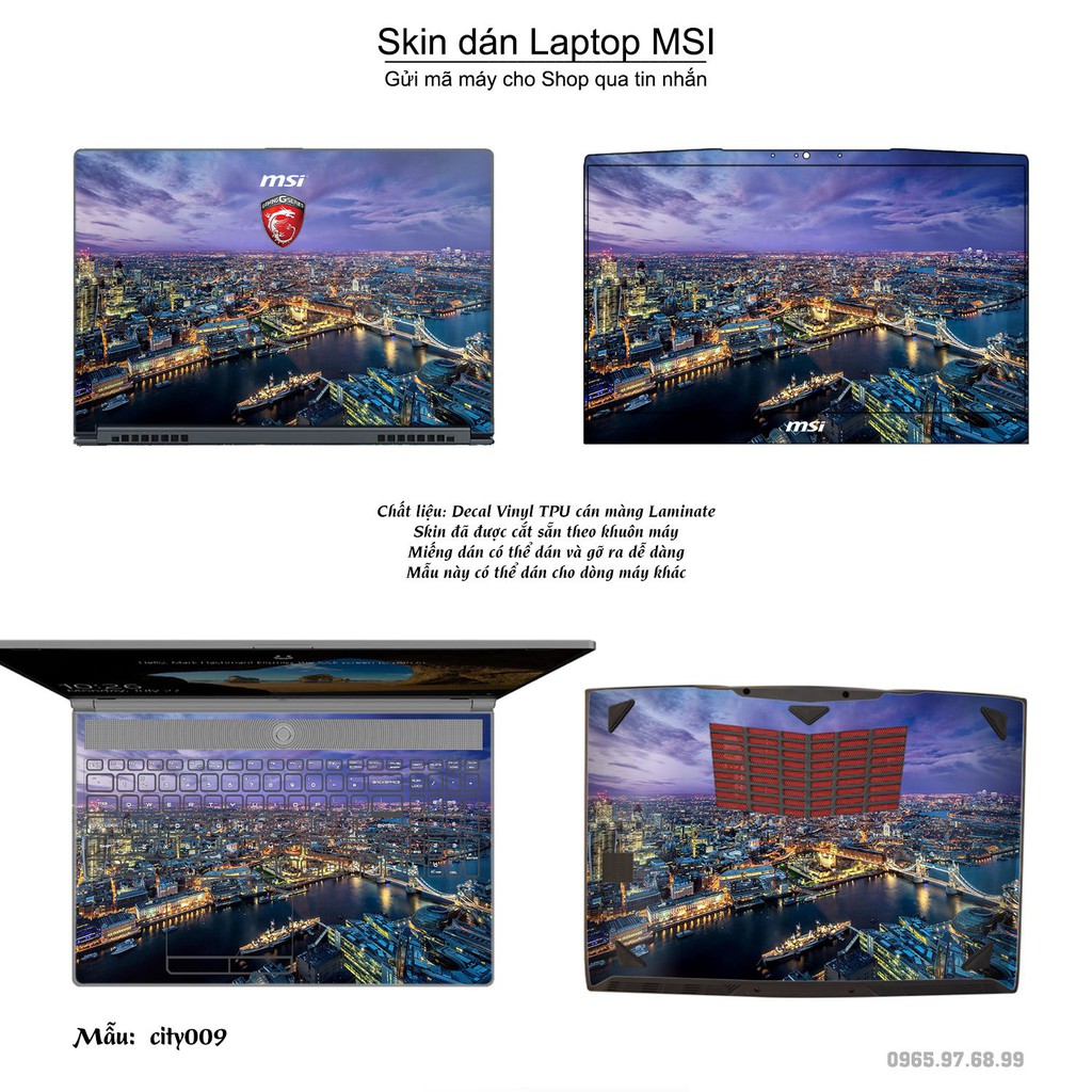 Skin dán Laptop MSI in hình thành phố nhiều mẫu 2 (inbox mã máy cho Shop)