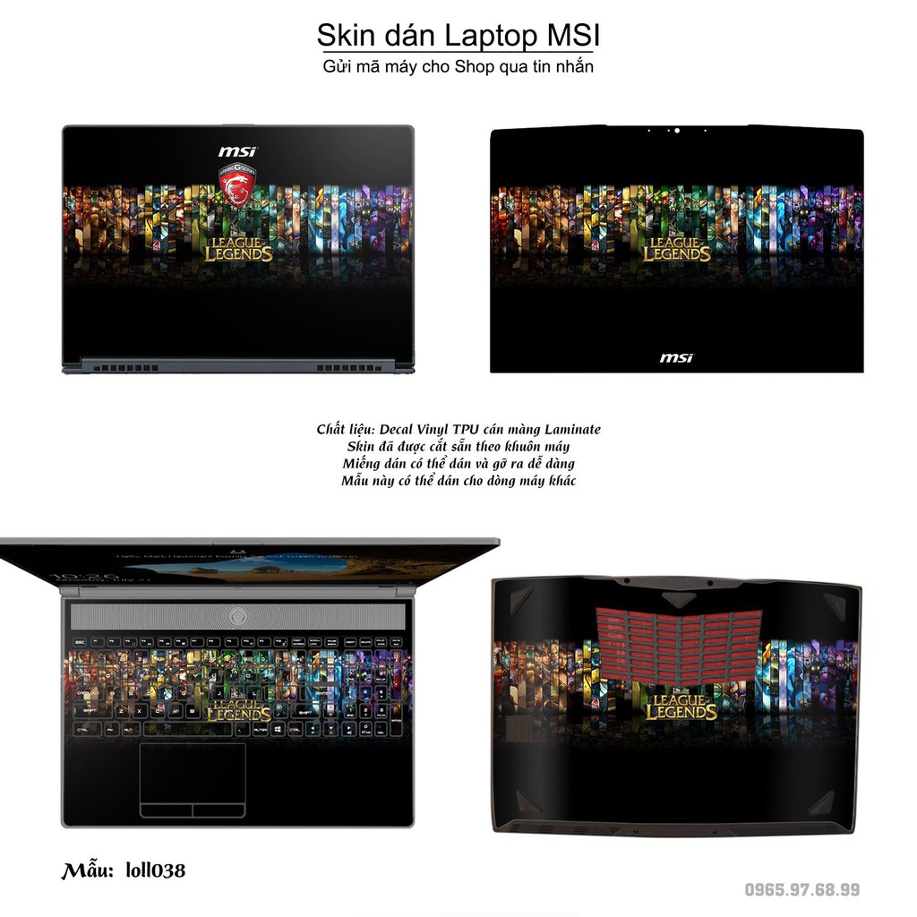 Máy tính & Laptop > Phụ Kiện Máy Tính > Miếng Dán & Ốp Laptop || Skin dán Laptop MSI in hình Liên Minh Huyền Thoại bộ 5 (inbox mã máy cho Shop)Còn hàng