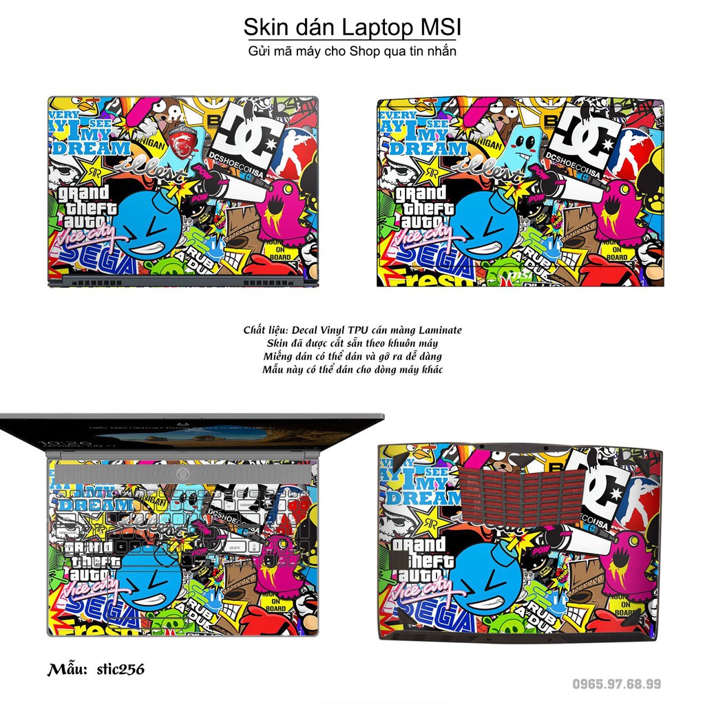 Giới thiệu Skin dán Laptop MSI in hình sticker bomb (inbox mã máy cho Shop)