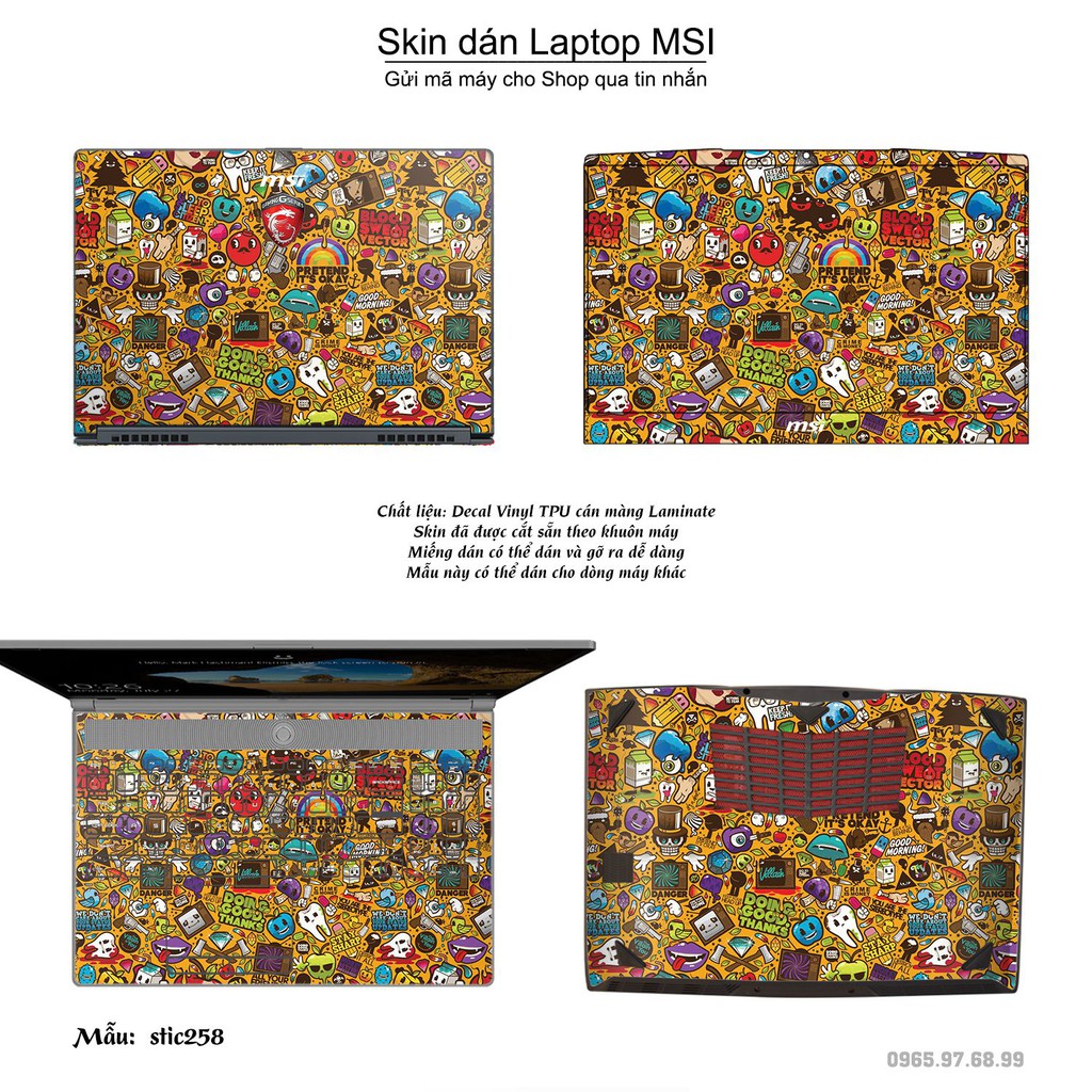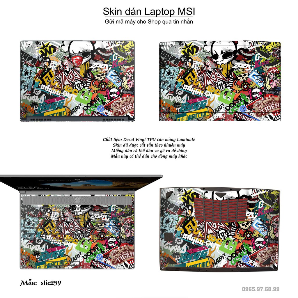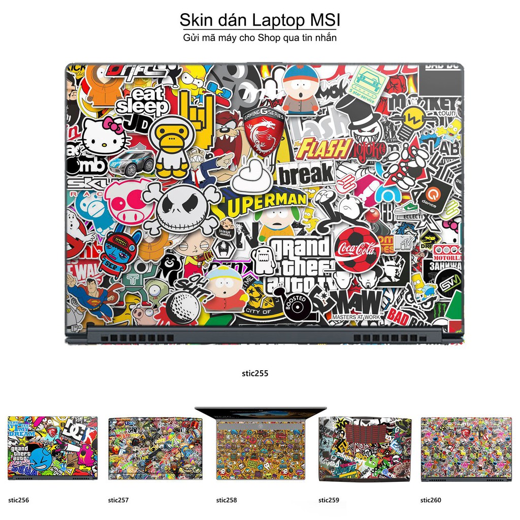Skin dán Laptop MSI in hình sticker bomb (inbox mã máy cho Shop)