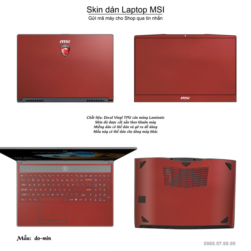 Giới thiệu Skin dán Laptop MSI in màu đỏ mịn (inbox mã máy cho Shop)