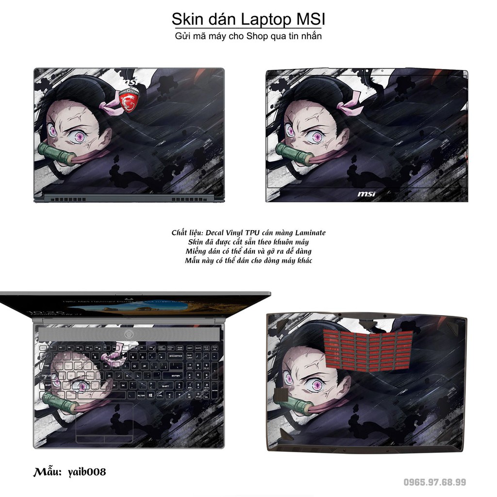Skin dán Laptop MSI in hình Kimetsu No Yaiba (inbox mã máy cho Shop)