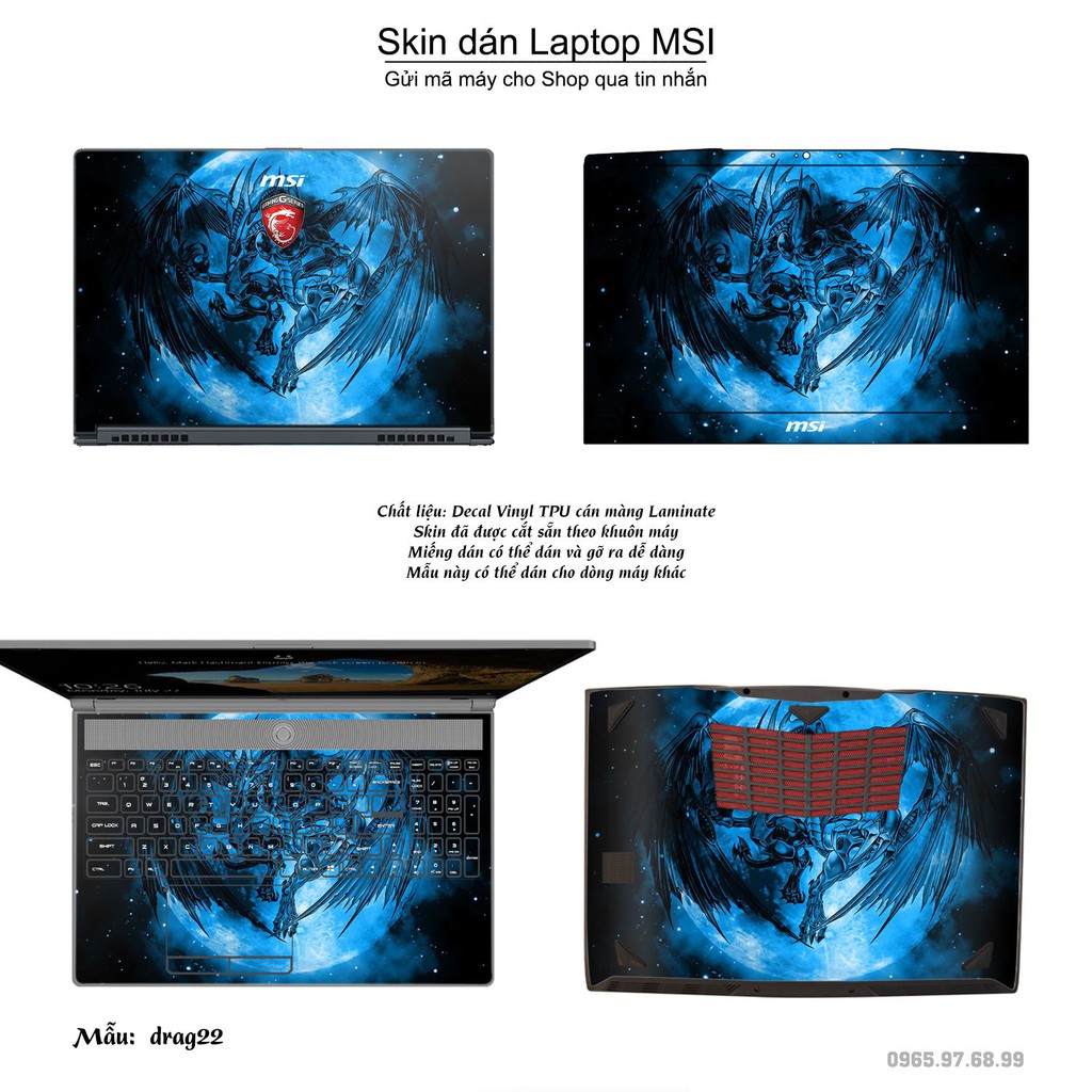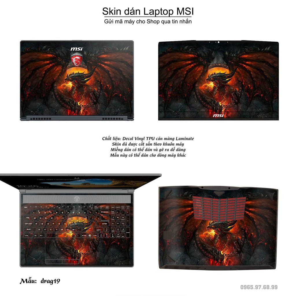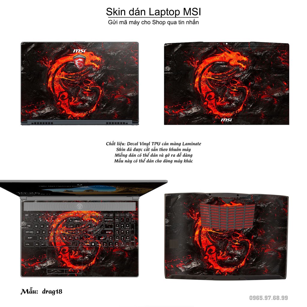 Máy tính & Laptop > Phụ Kiện Máy Tính > Miếng Dán & Ốp Laptop || Skin dán Laptop MSI in hình rồng (inbox mã máy cho Shop)Còn hàng