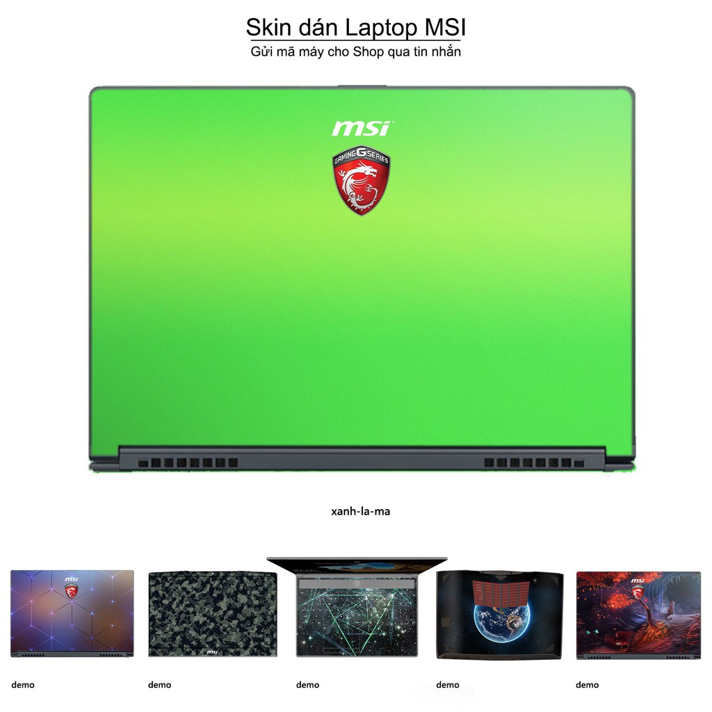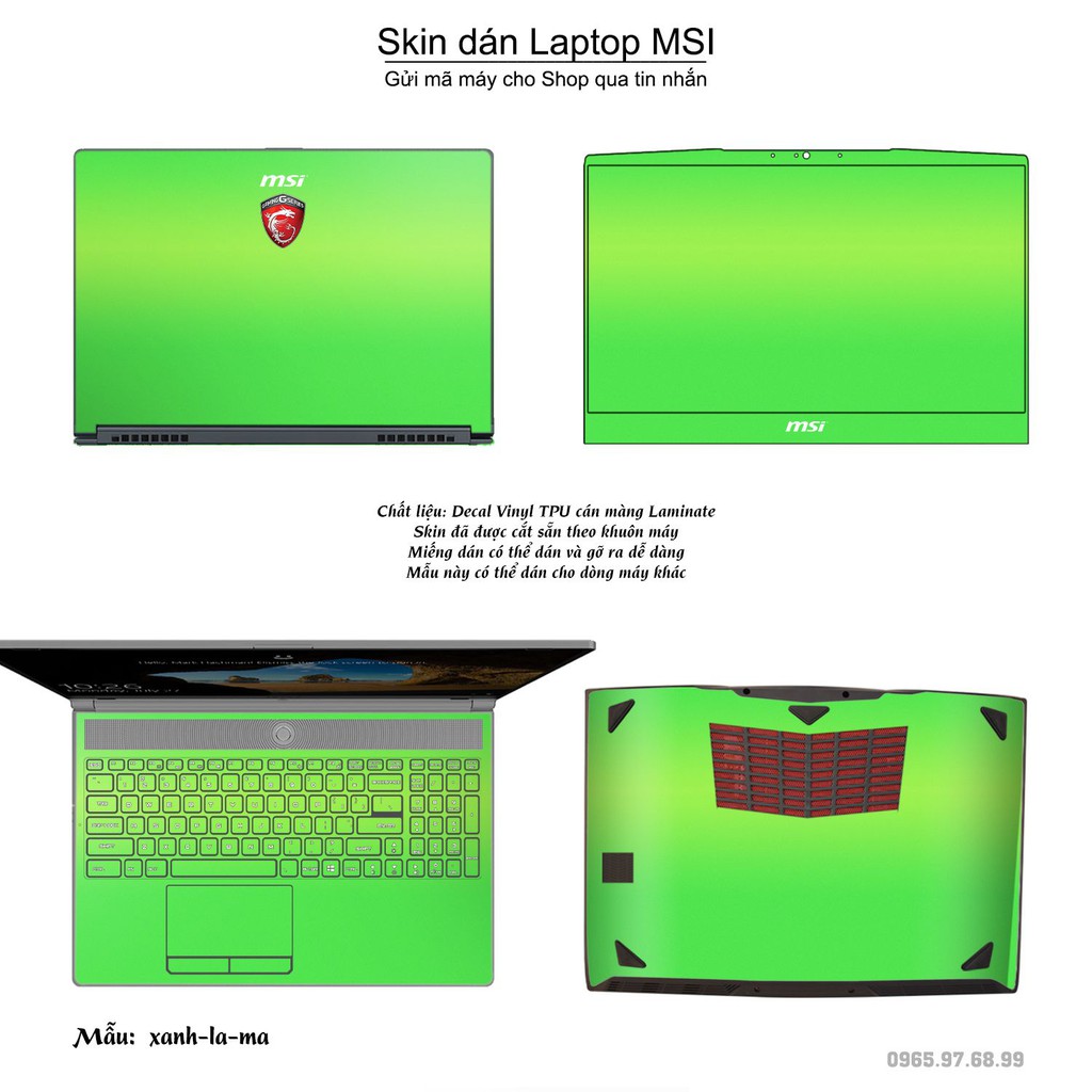 Giới thiệu Skin dán Laptop MSI màu xanh lá mạ (inbox mã máy cho Shop)