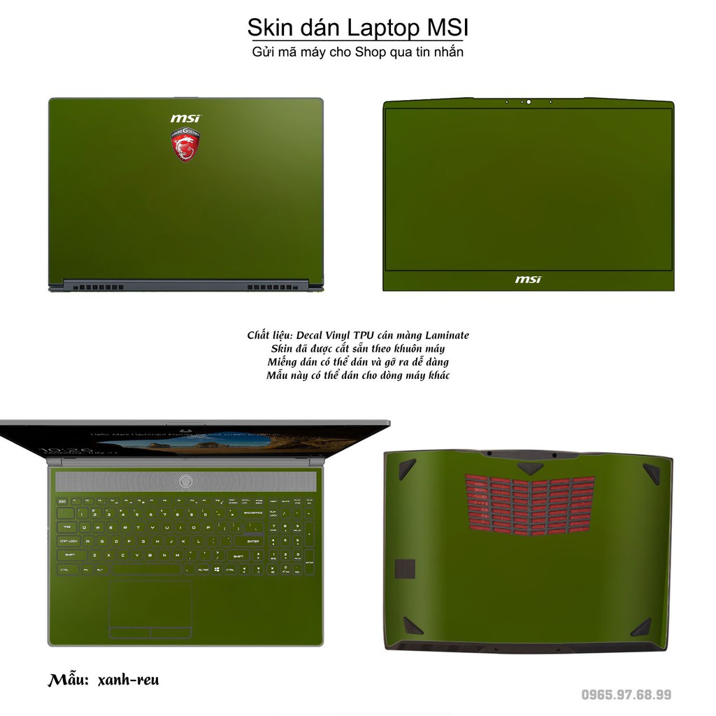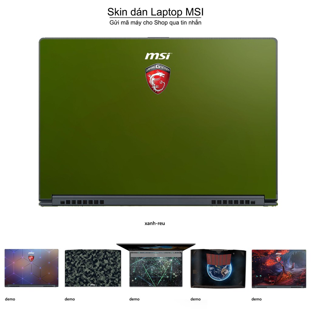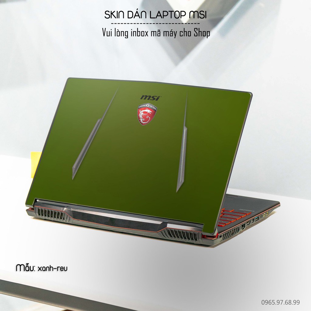 Skin dán Laptop MSI màu xanh rêu (inbox mã máy cho Shop)