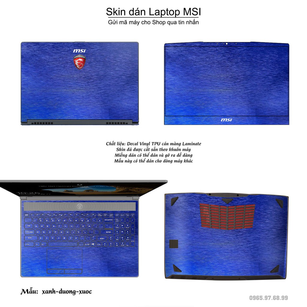 Skin dán Laptop MSI màu xanh dương xước (inbox mã máy cho Shop)