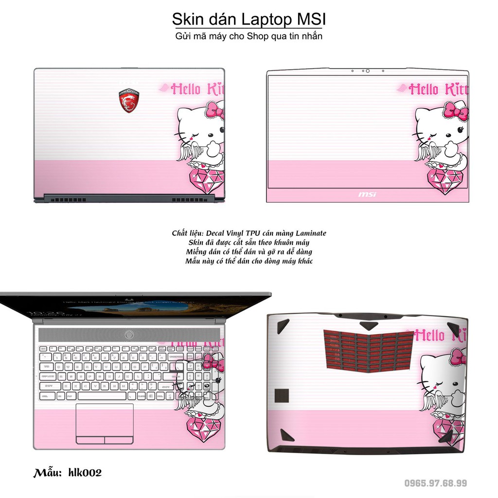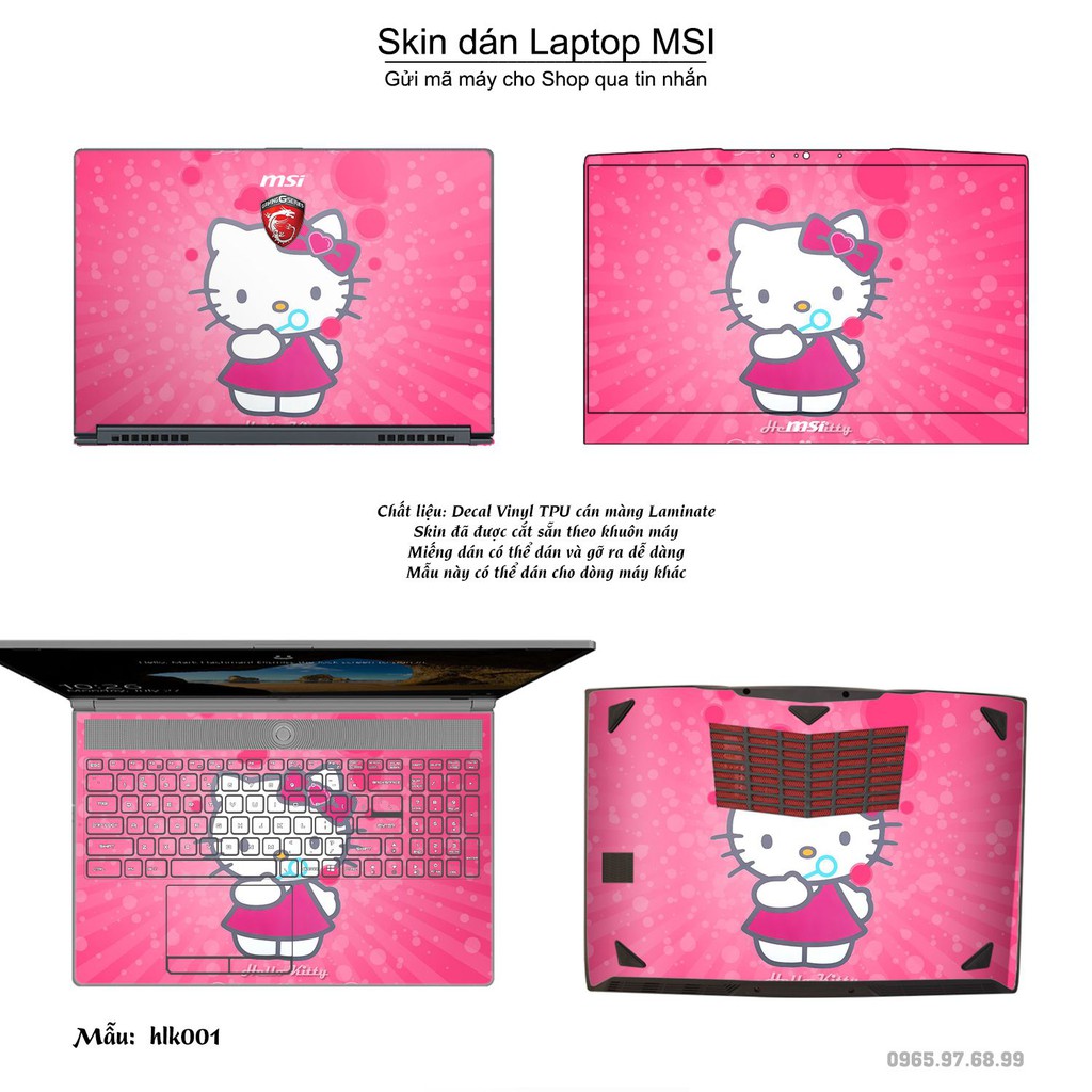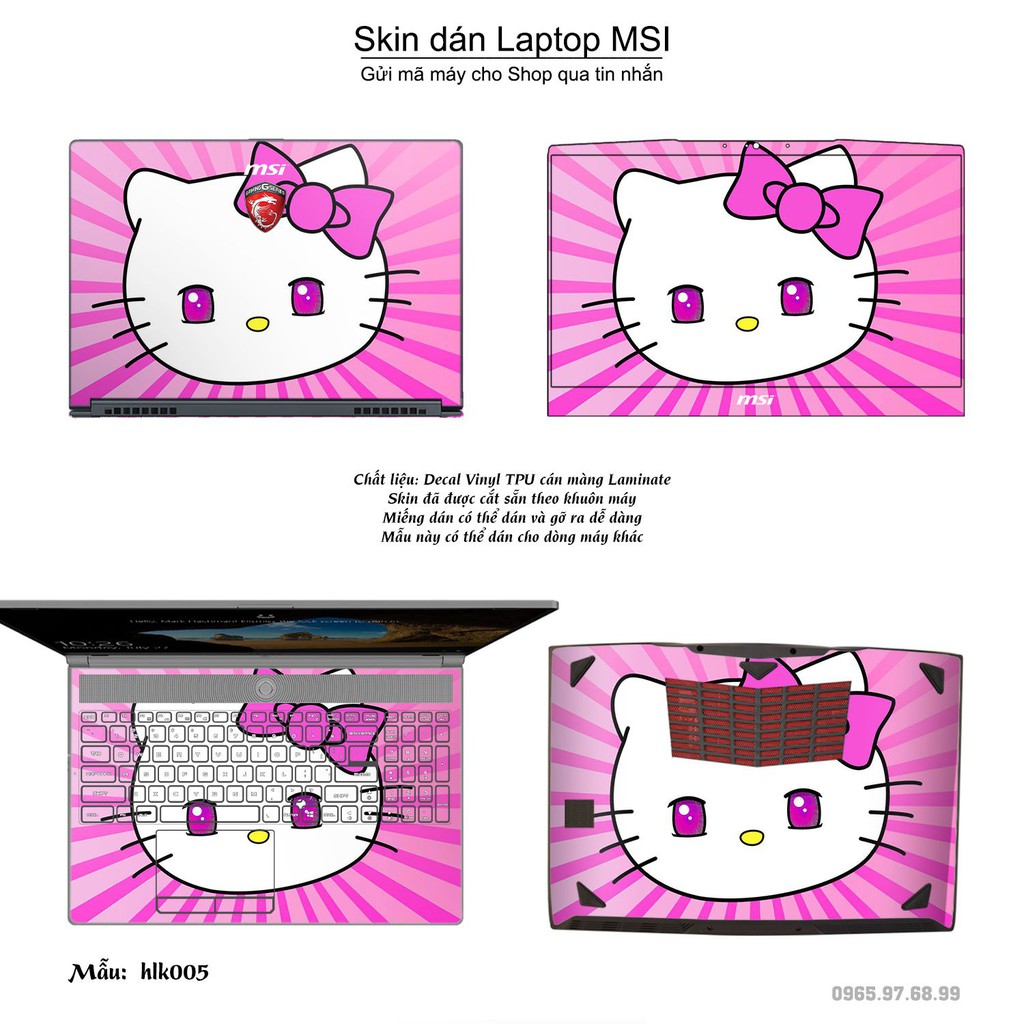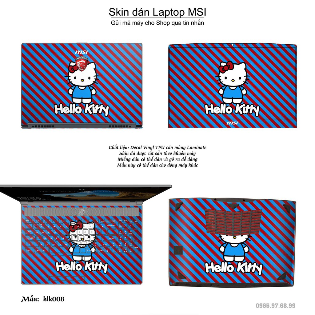 Giới thiệu Skin dán Laptop MSI in hình Hello Kitty (inbox mã máy cho Shop)