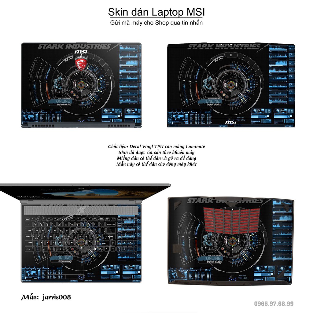 Giới thiệu Skin dán Laptop MSI in hình Jarvis (inbox mã máy cho Shop)