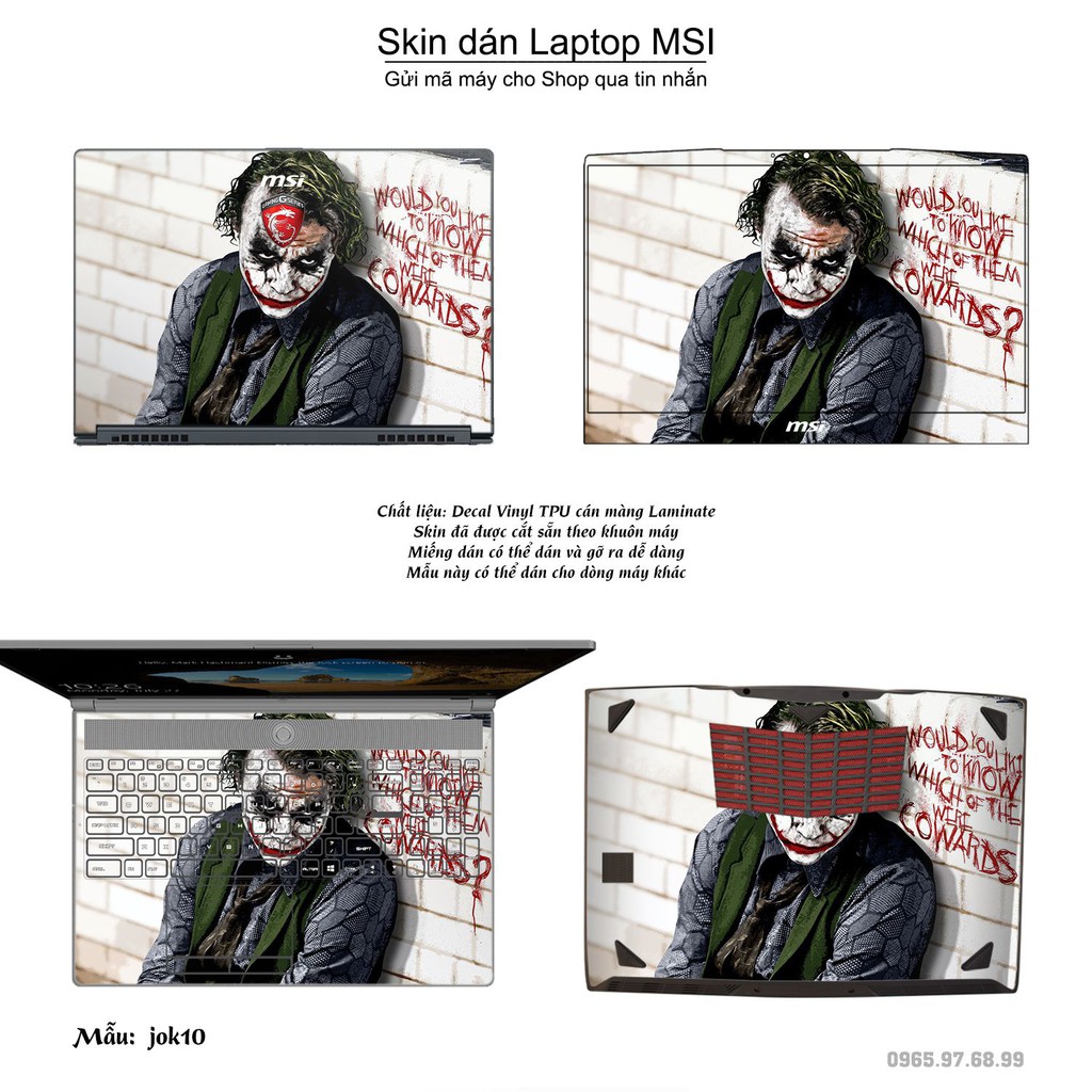 Giới thiệu Skin dán Laptop MSI in hình Joker _nhiều mẫu 2 (inbox mã máy cho Shop)