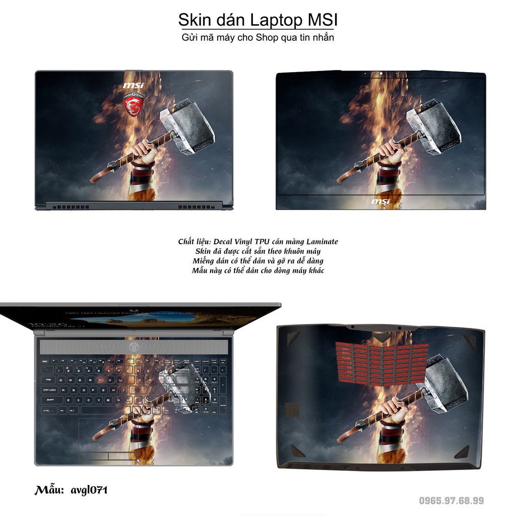 Giới thiệu Skin dán Laptop MSI in hình Mjolnir - Avenger - avgl071 (inbox mã máy cho Shop)