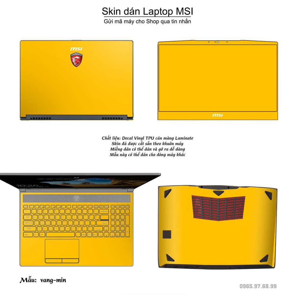 Giới thiệu Skin dán Laptop MSI màu vàng mịn (inbox mã máy cho Shop)