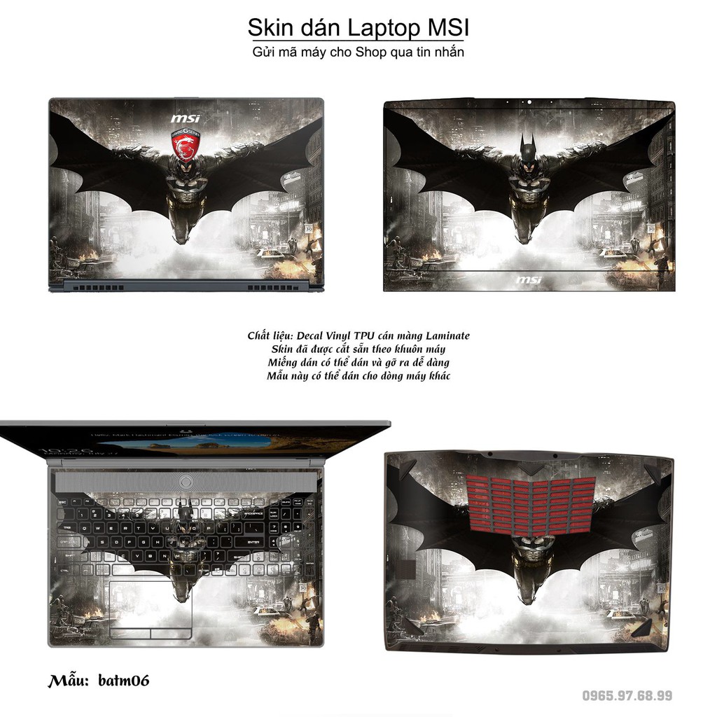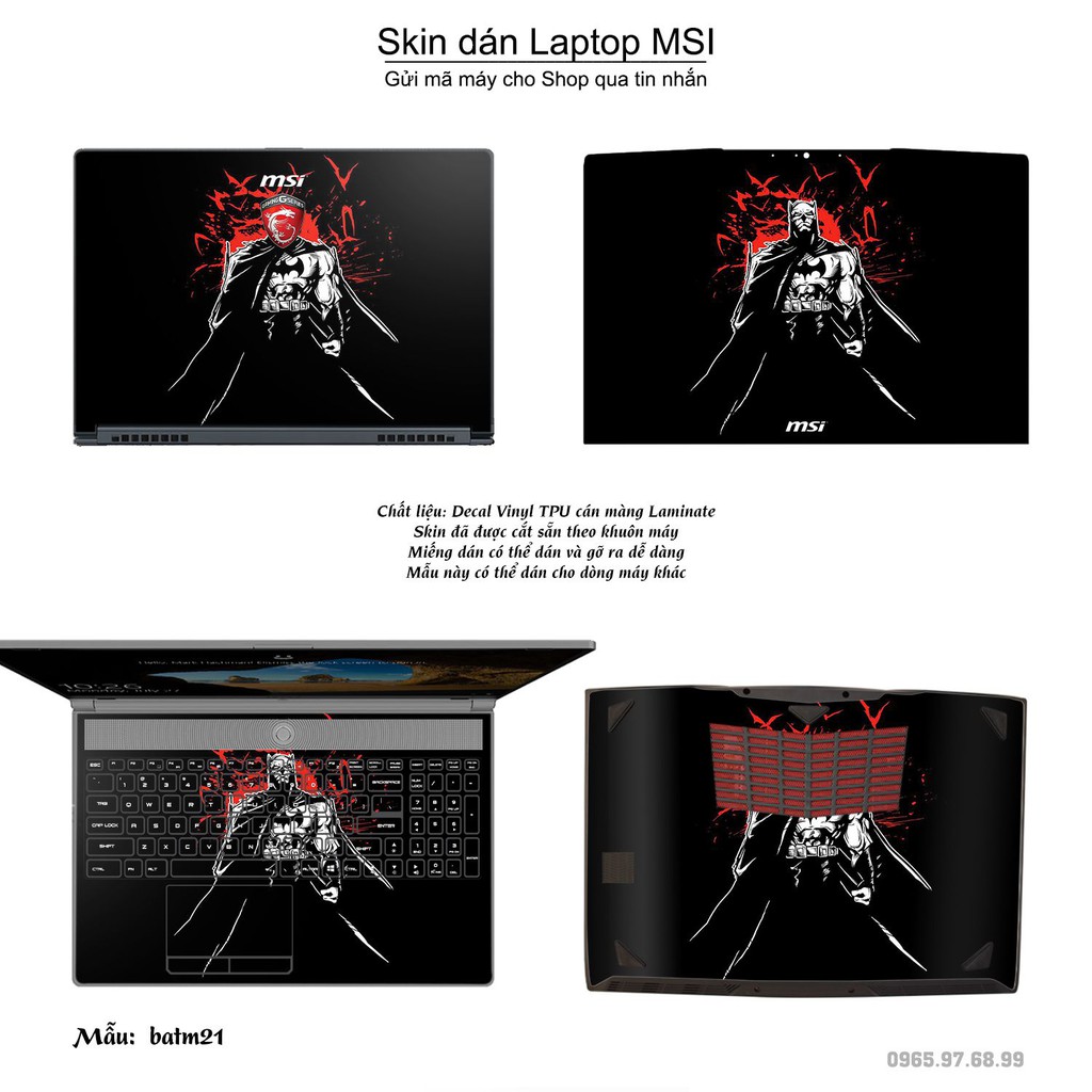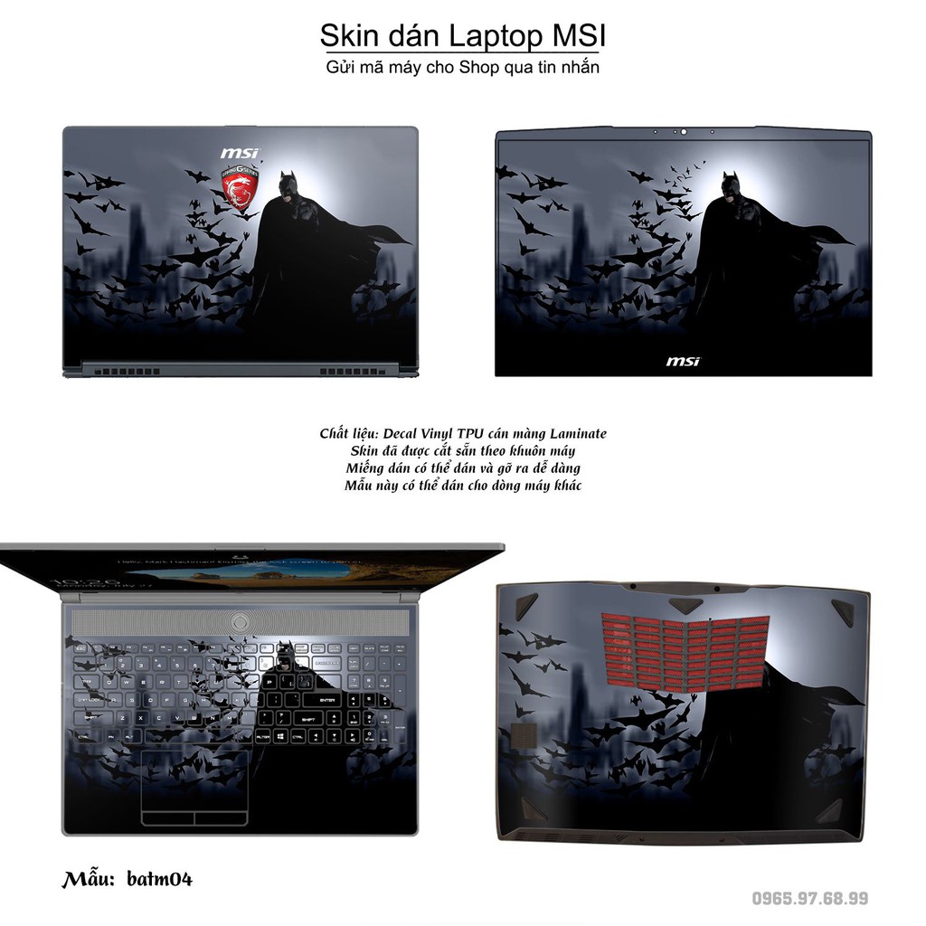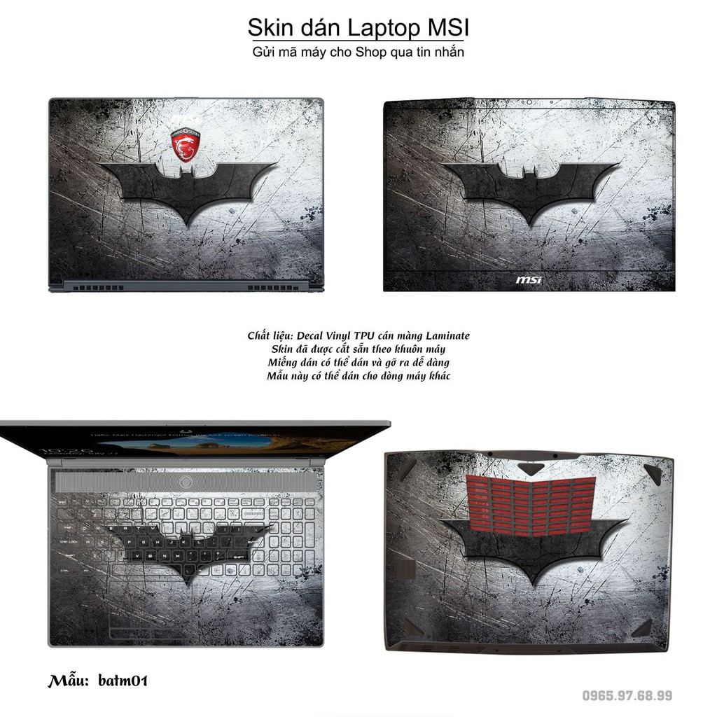 Skin dán Laptop MSI in hình Người dơi (inbox mã máy cho Shop)