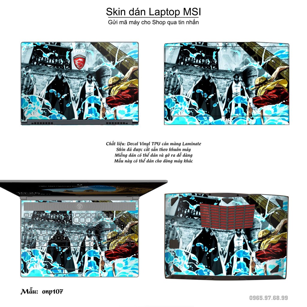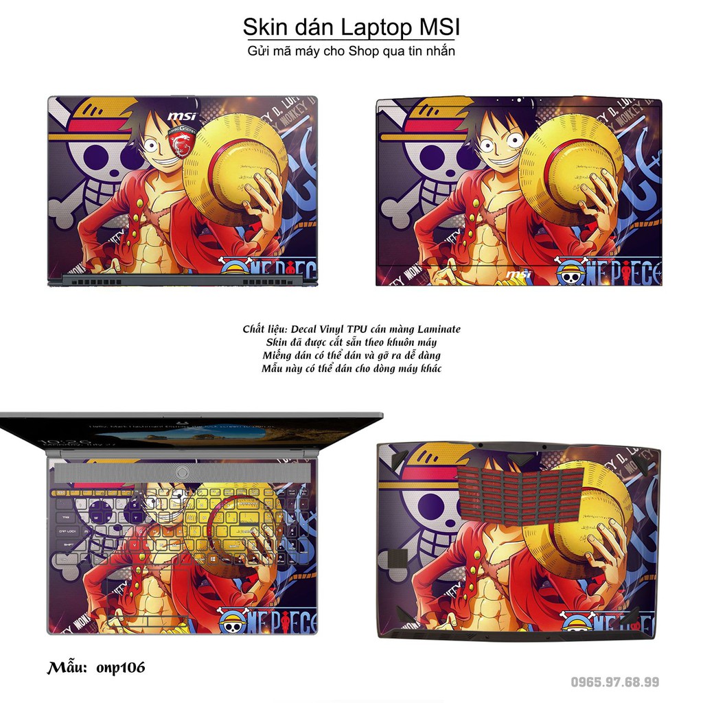 Máy tính & Laptop > Phụ Kiện Máy Tính > Miếng Dán & Ốp Laptop || Skin dán Laptop MSI in hình One Piece bộ 11 (inbox mã máy cho Shop)Còn hàng