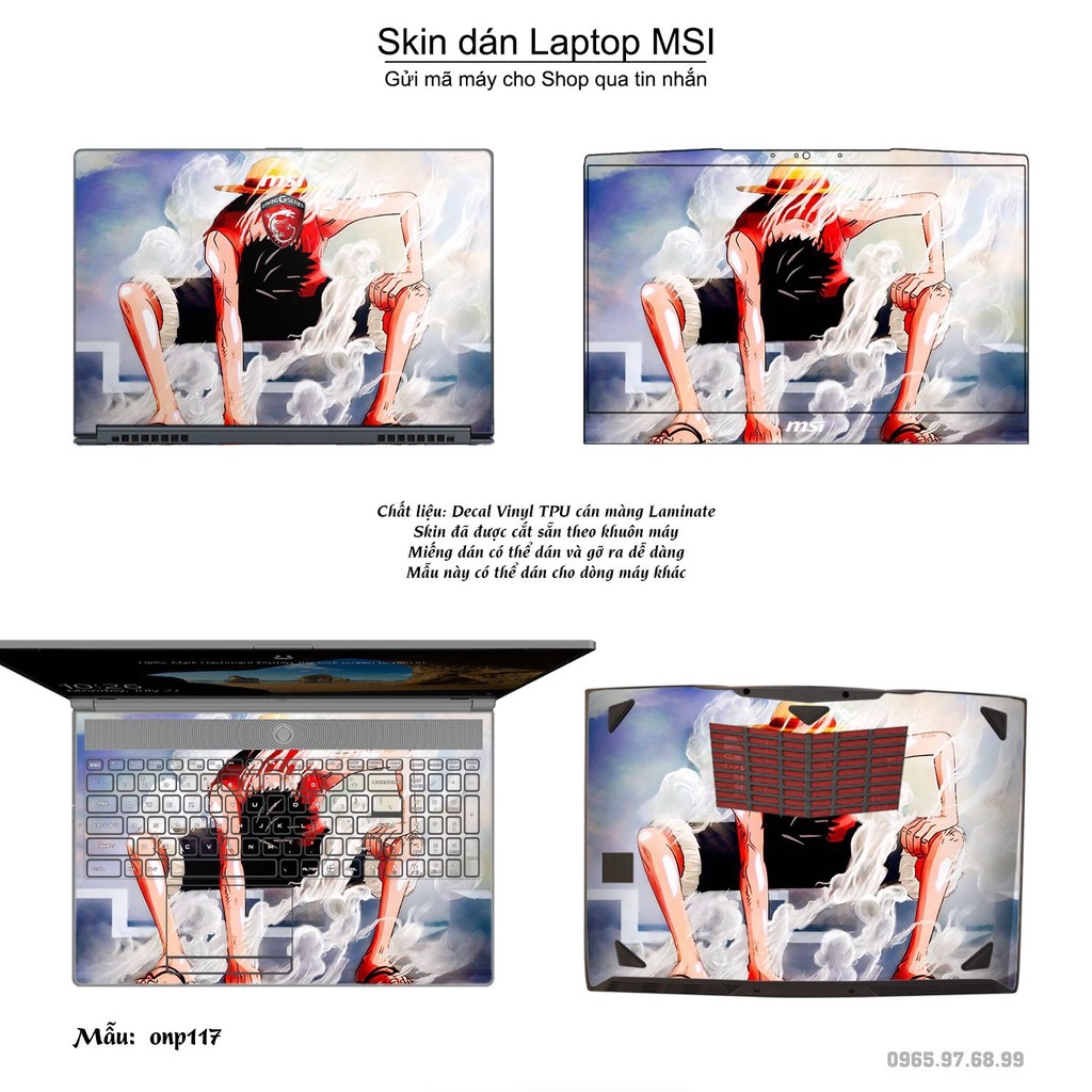 Máy tính & Laptop > Phụ Kiện Máy Tính > Miếng Dán & Ốp Laptop || Skin dán Laptop MSI in hình One Piece bộ 13 (inbox mã máy cho Shop)Còn hàng