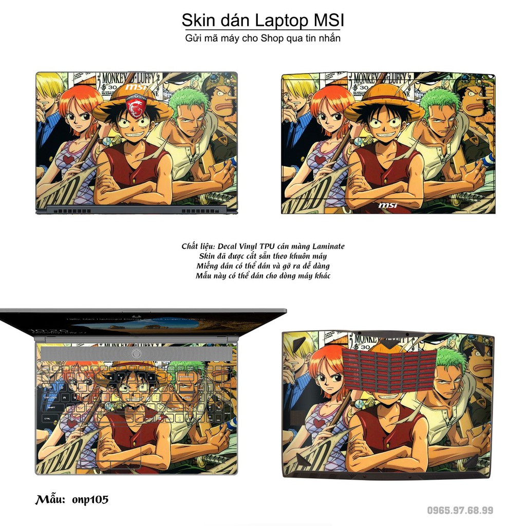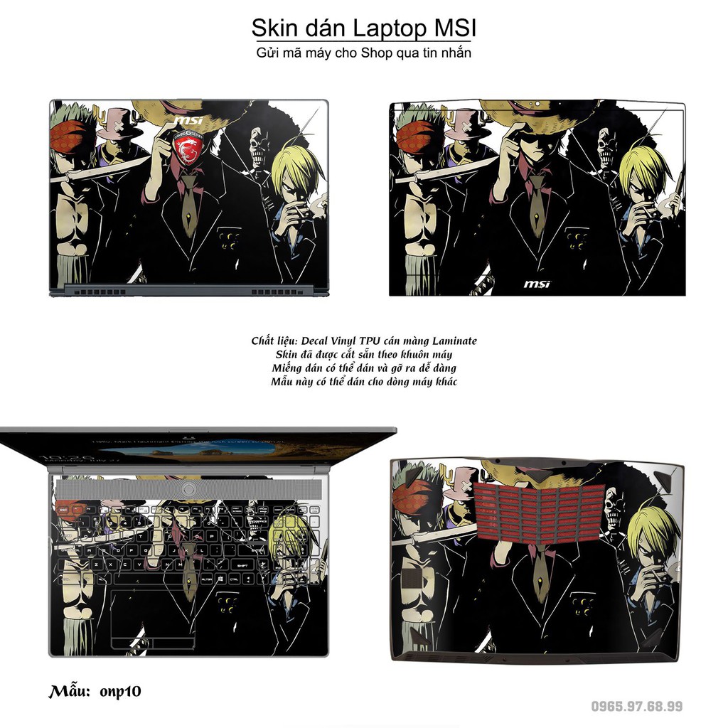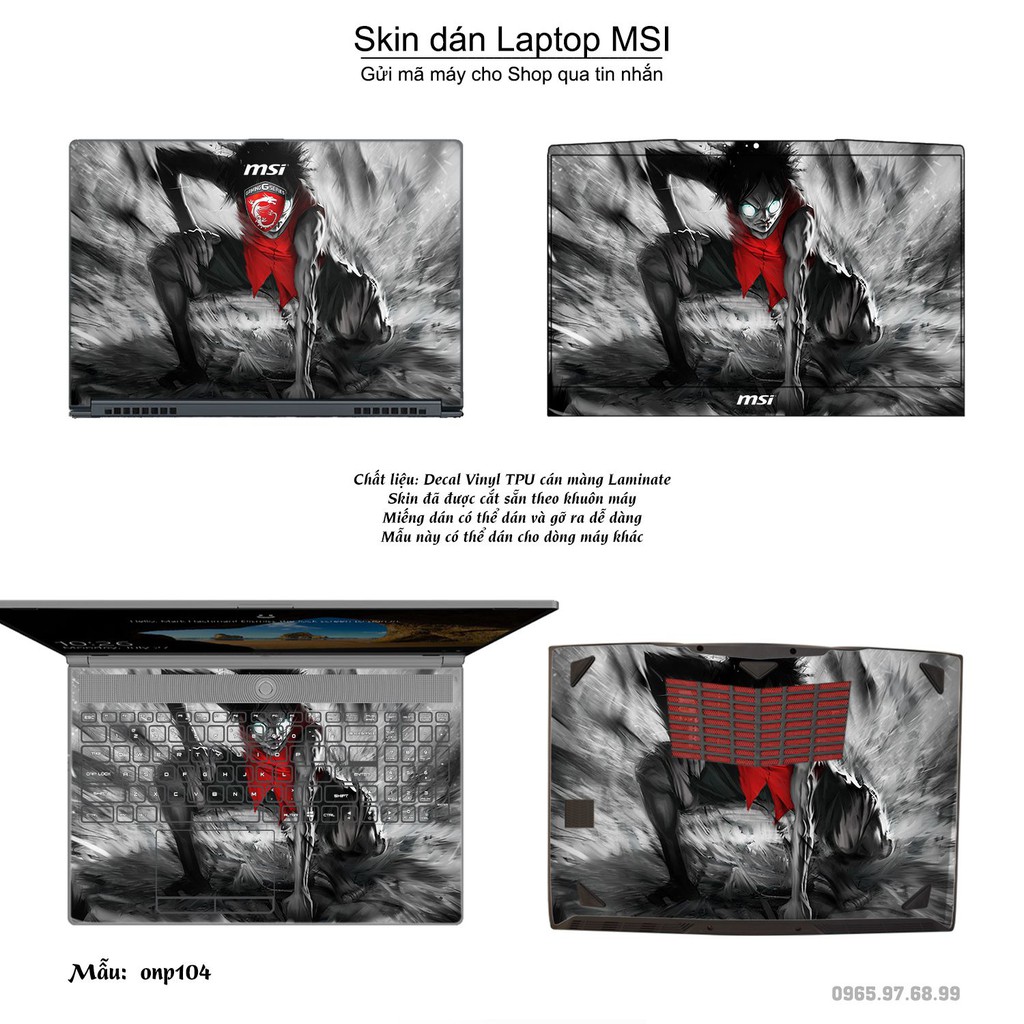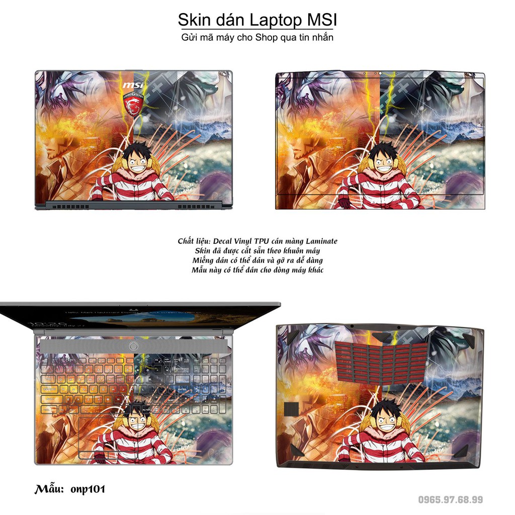 Máy tính & Laptop > Phụ Kiện Máy Tính > Miếng Dán & Ốp Laptop || Skin dán Laptop MSI in hình One Piece bộ 10 (inbox mã máy cho Shop)Còn hàng