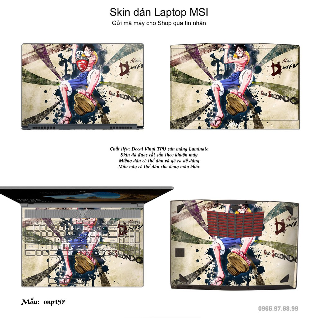 Skin dán Laptop MSI in hình One Piece _nhiều mẫu 20 (inbox mã máy cho Shop)