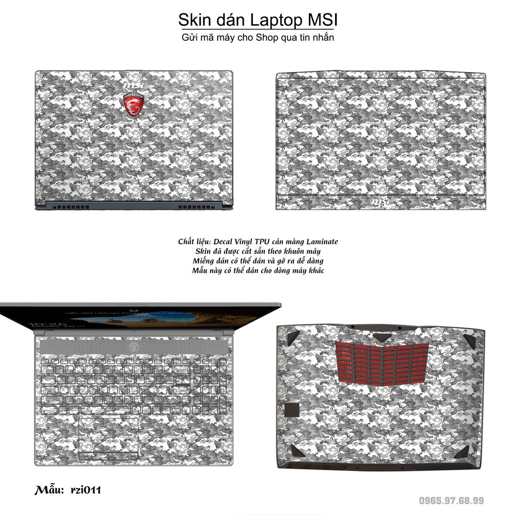 Máy tính & Laptop > Phụ Kiện Máy Tính > Miếng Dán & Ốp Laptop || Skin dán Laptop MSI in hình rằn ri bộ 2 (inbox mã máy cho Shop)Còn hàng
