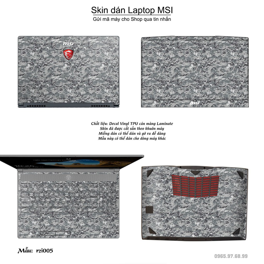 Máy tính & Laptop > Phụ Kiện Máy Tính > Miếng Dán & Ốp Laptop || Skin dán Laptop MSI in hình rằn ri bộ 5 (inbox mã máy cho Shop)Còn hàng