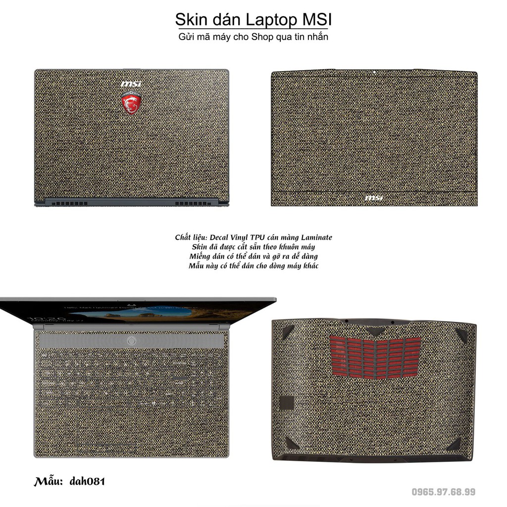 Máy tính & Laptop > Phụ Kiện Máy Tính > Miếng Dán & Ốp Laptop || Skin dán Laptop MSI in hình vân vải (inbox mã máy cho Shop)Còn hàng