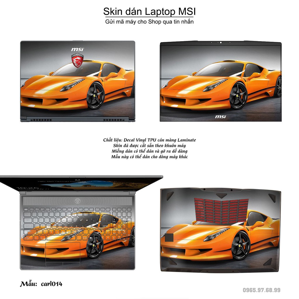Skin dán Laptop MSI in hình xe hơi (inbox mã máy cho Shop)