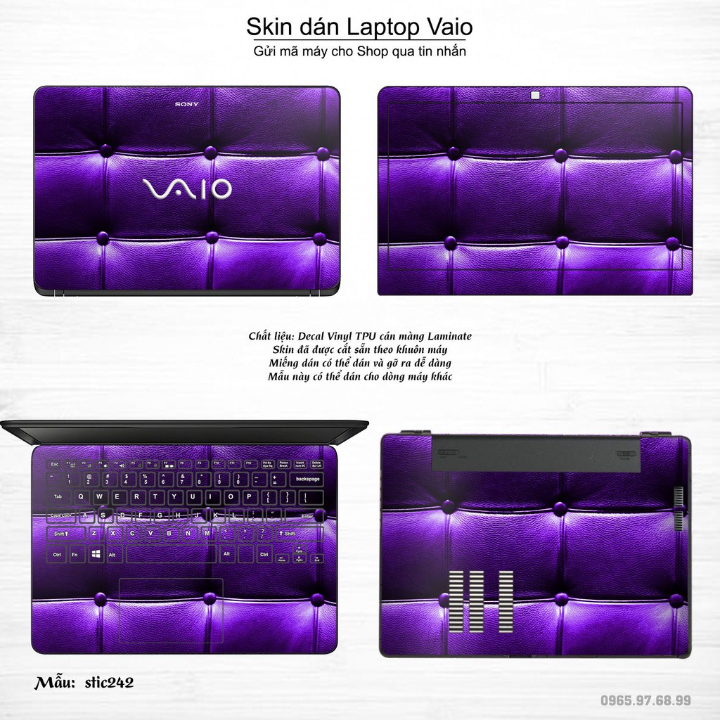 Skin dán là phương pháp tối ưu để làm đẹp và bảo vệ chiếc Laptop Sony Vaio của bạn,Miếng dán đã được cắt sẵn theo khuôn máy, cắt chính xác các chi tiết như camera, cảm biến, logo, bàn phím...