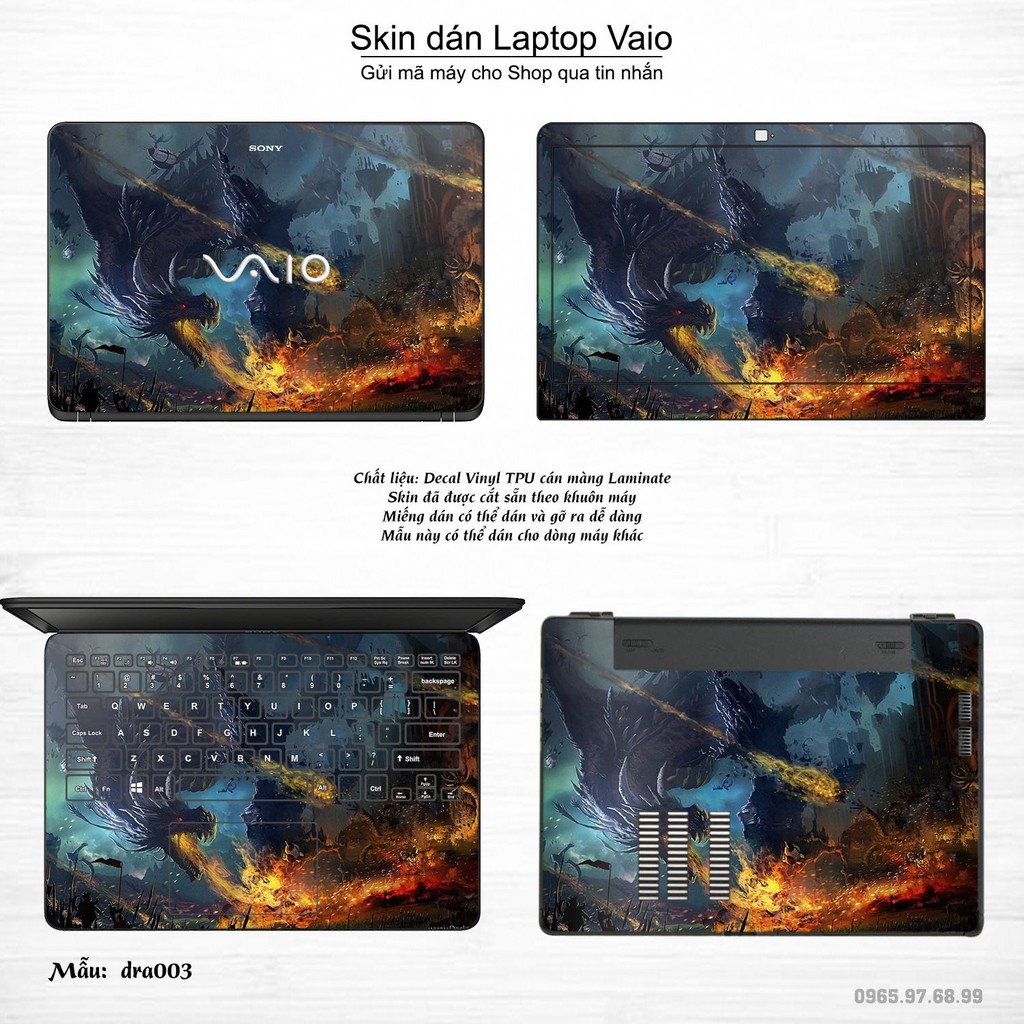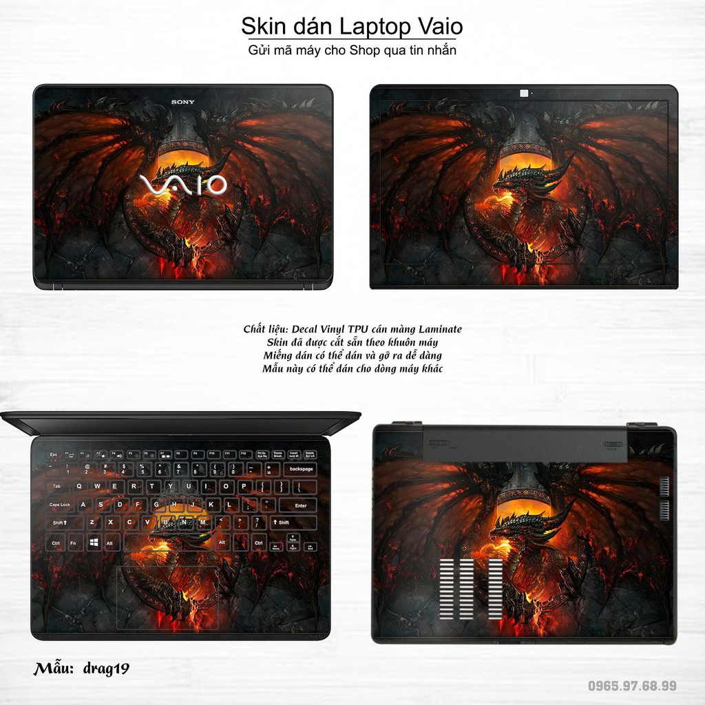 Skin dán Laptop Sony Vaio in hình rồng (inbox mã máy cho Shop)