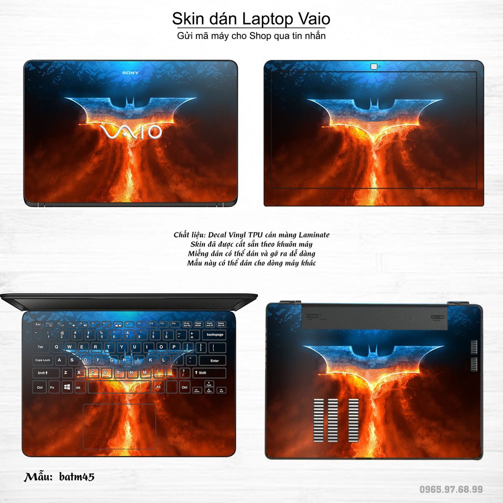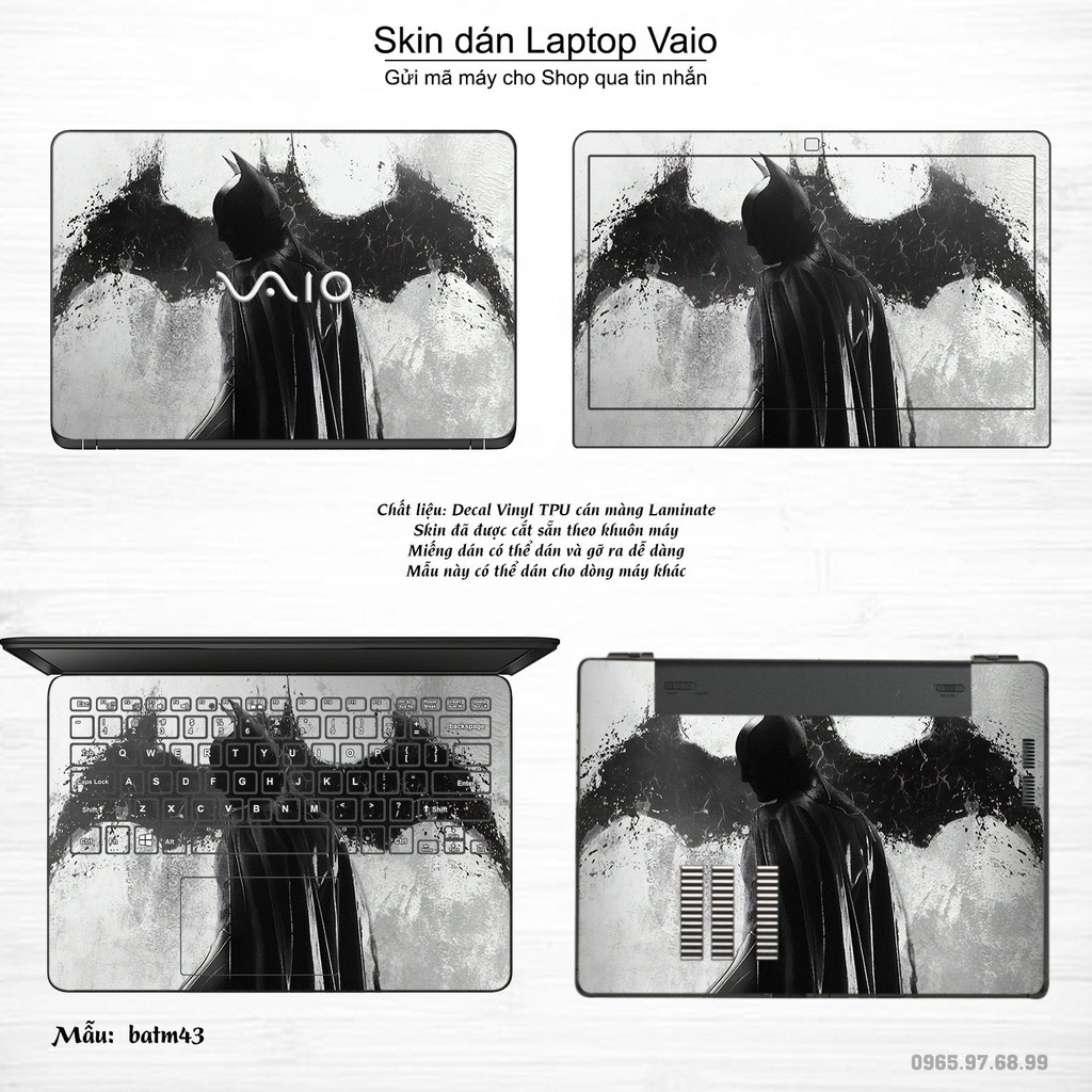Máy tính & Laptop > Phụ Kiện Máy Tính > Miếng Dán & Ốp Laptop || Skin dán Laptop Sony Vaio in hình Batman bộ 2 (inbox mã máy cho Shop)Còn hàng