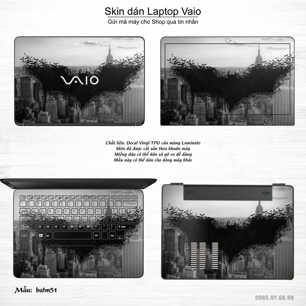 Giới thiệu Skin dán Laptop Sony Vaio in hình Người dơi _nhiều mẫu 2 (inbox mã máy cho Shop)