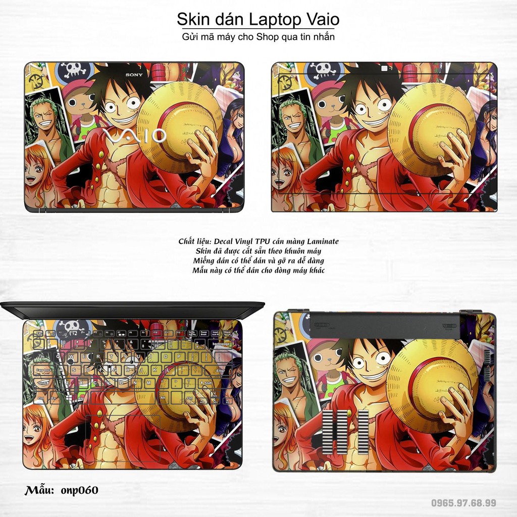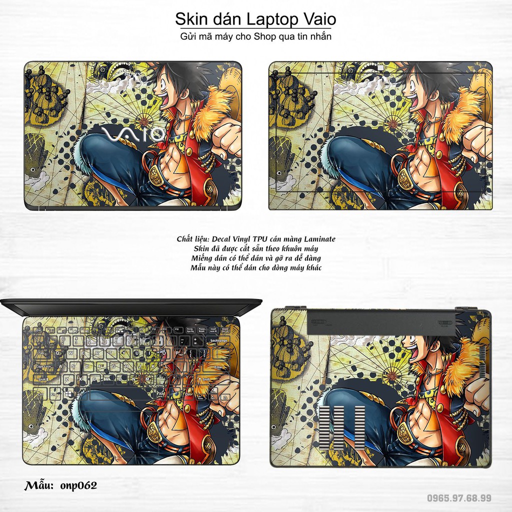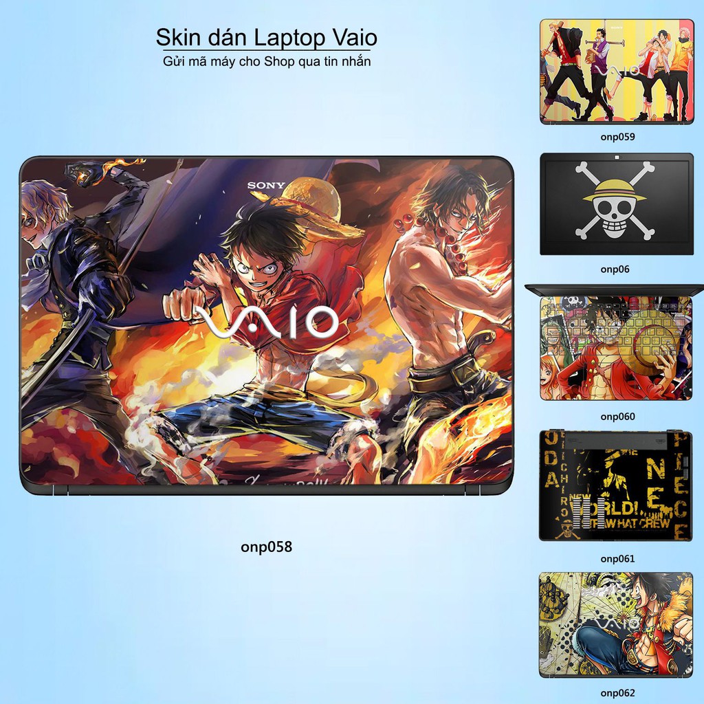 Máy tính & Laptop > Phụ Kiện Máy Tính > Miếng Dán & Ốp Laptop || Skin dán Laptop Sony Vaio in hình One Piece bộ 3 (inbox mã máy cho Shop)Còn hàng