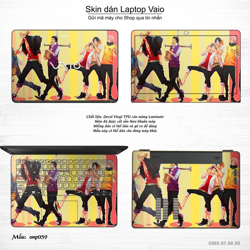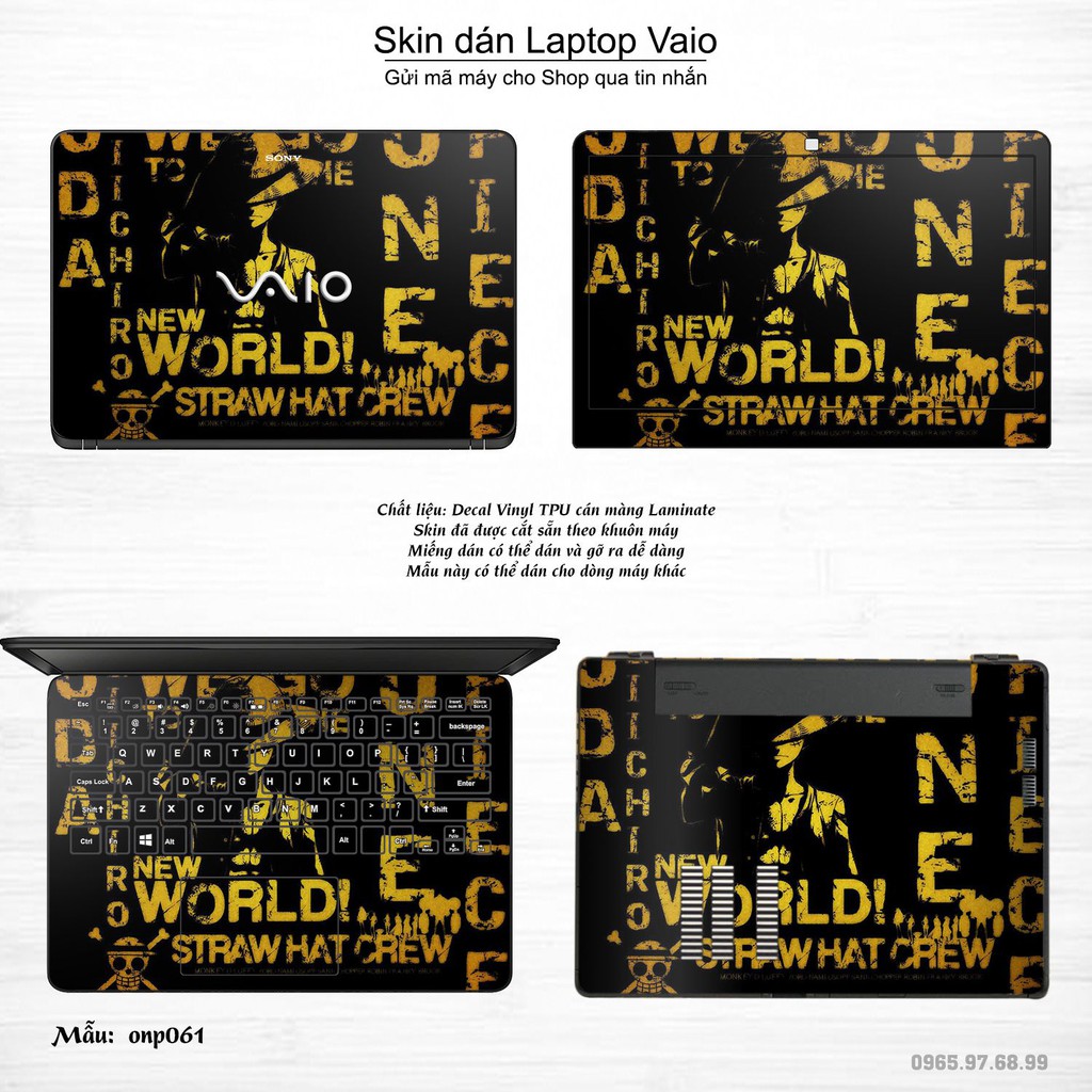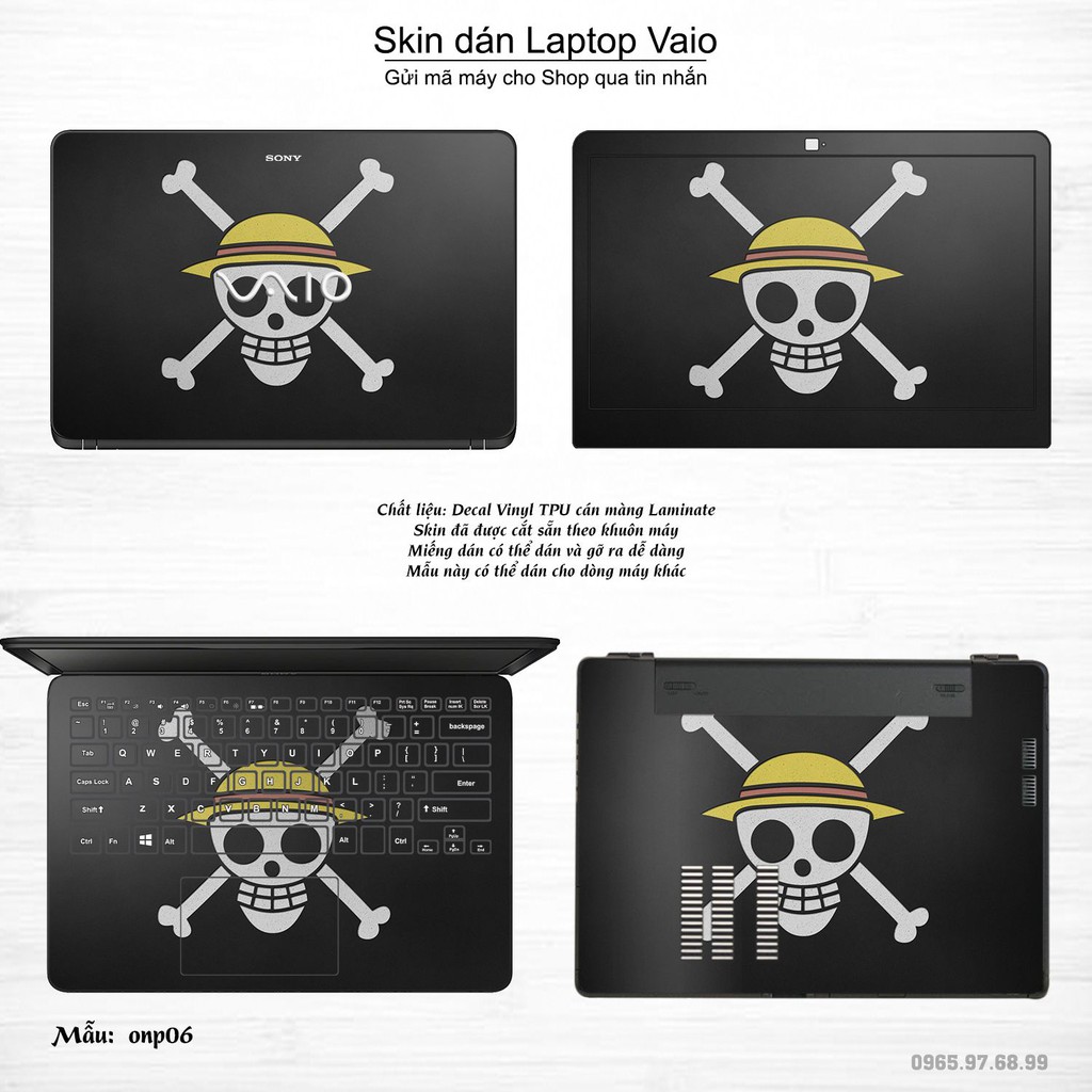 Máy tính & Laptop > Phụ Kiện Máy Tính > Miếng Dán & Ốp Laptop || Skin dán Laptop Sony Vaio in hình One Piece bộ 3 (inbox mã máy cho Shop)Còn hàng