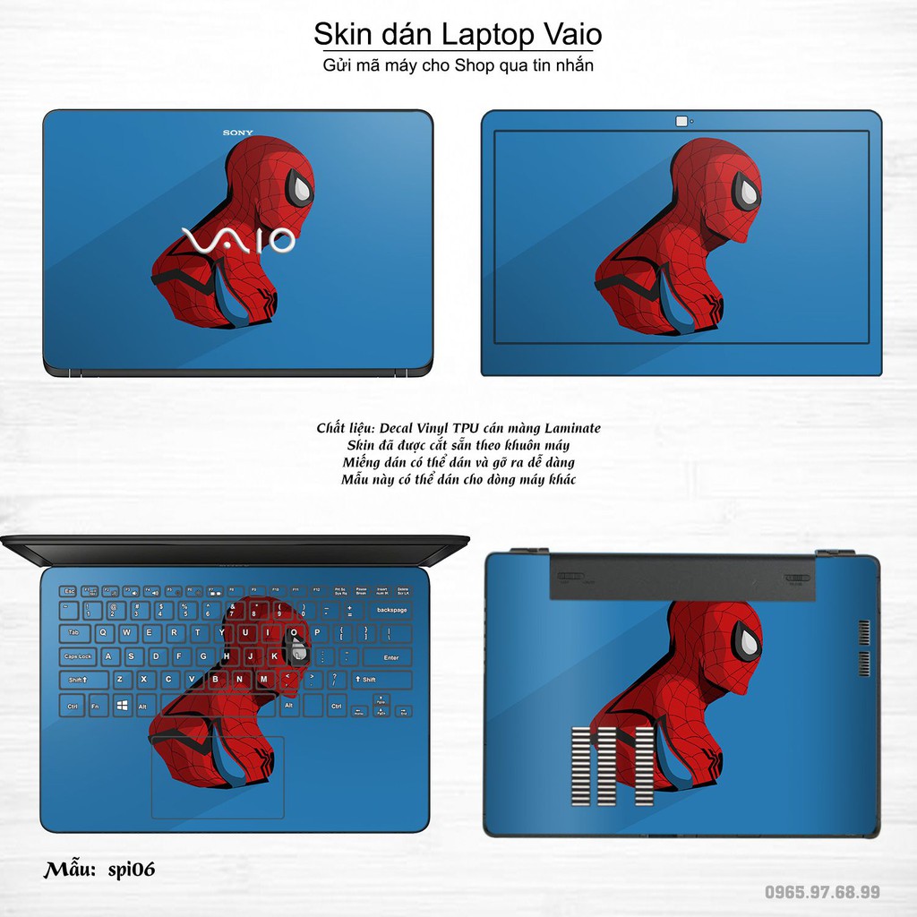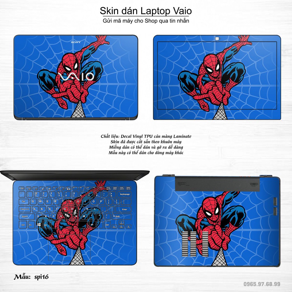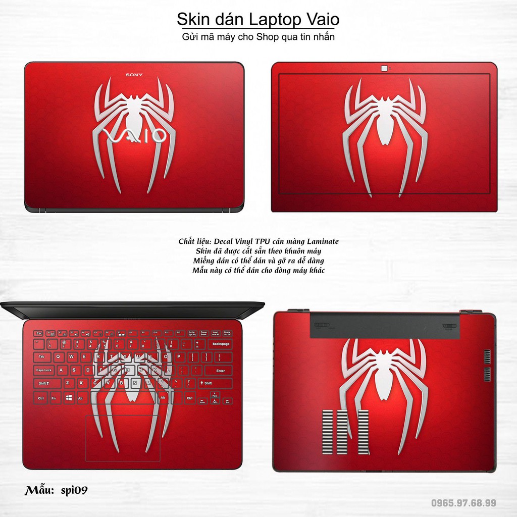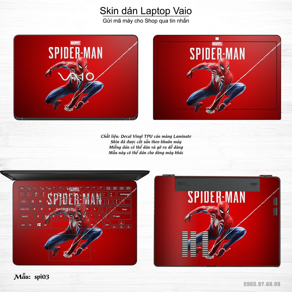 Máy tính & Laptop > Phụ Kiện Máy Tính > Miếng Dán & Ốp Laptop || Skin dán Laptop Sony Vaio in hình người nhện Spiderman (inbox mã máy cho Shop)Còn hàng