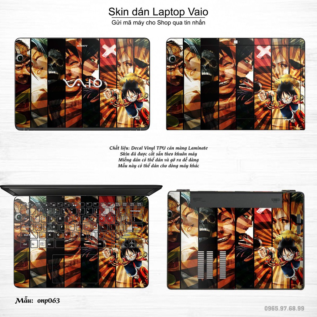 Máy tính & Laptop > Phụ Kiện Máy Tính Khác || Skin dán Laptop Sony Vaio in hình One Piece bộ 4 (inbox mã máy cho Shop)Còn hàng