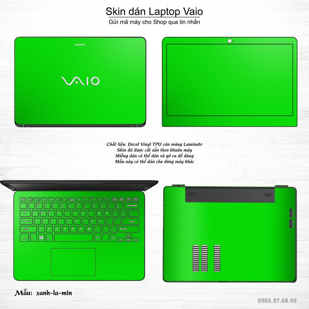 Giới thiệu Skin dán Laptop Sony Vaio màu xanh lá mịn (inbox mã máy cho Shop)
