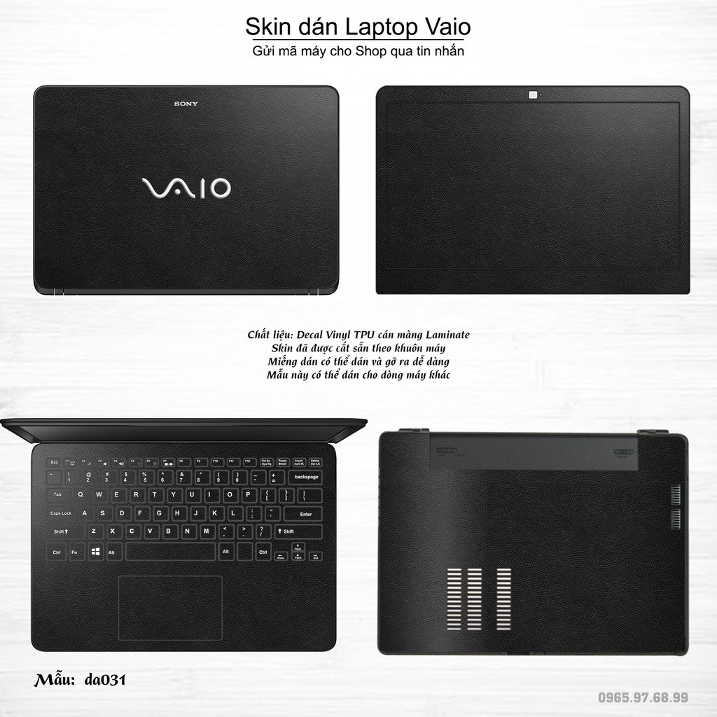 Máy tính & Laptop > Phụ Kiện Máy Tính > Miếng Dán & Ốp Laptop || Skin dán Laptop Sony Vaio in hình Vân Da Bò Đen - Da031 (inbox mã máy cho Shop)Còn hàng