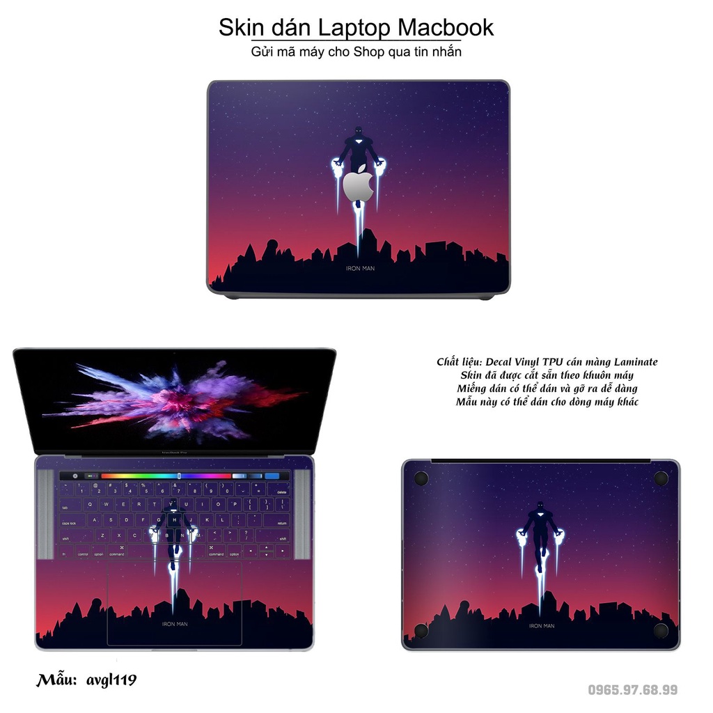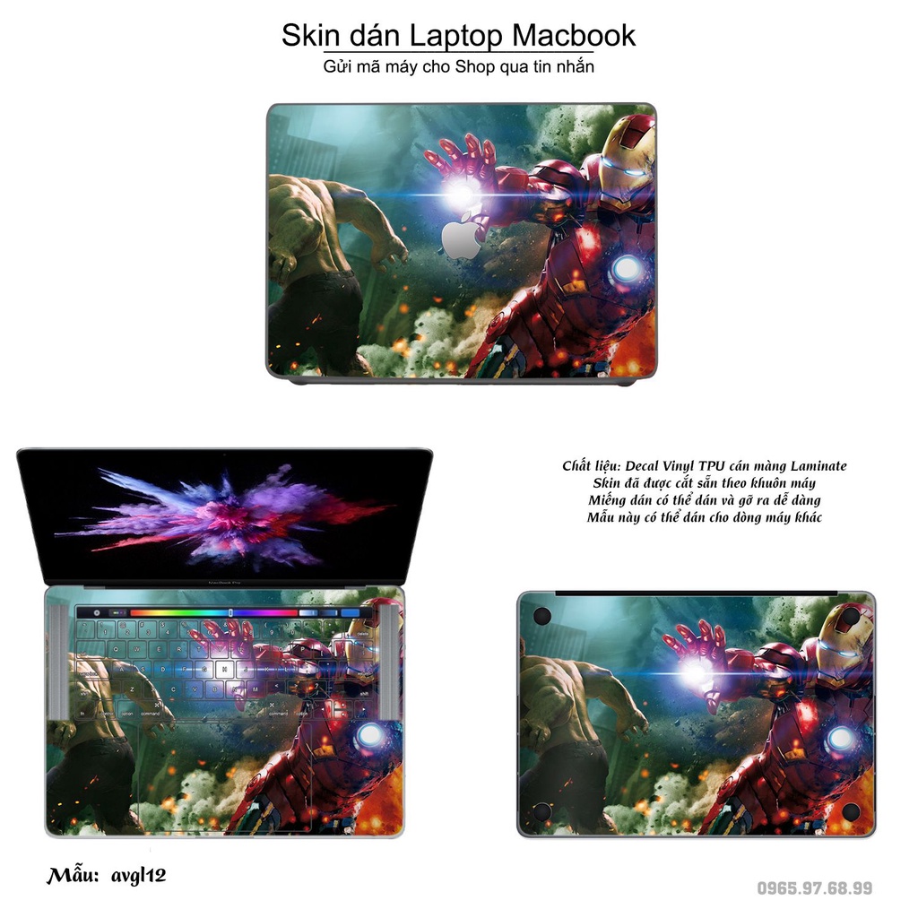 Skin dán Macbook mẫu Avenger (đã cắt sẵn, inbox mã máy cho shop)