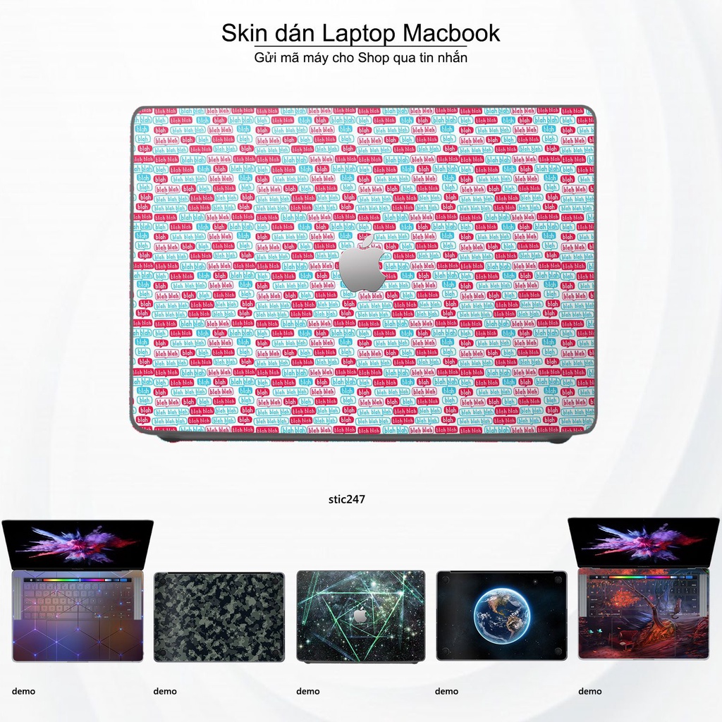 Máy tính & Laptop > Phụ Kiện Máy Tính > Miếng Dán & Ốp Laptop || Skin dán Macbook mẫu Blah Blah - stic247 (đã cắt sẵn, inbox mã máy cho shop)Còn hàng