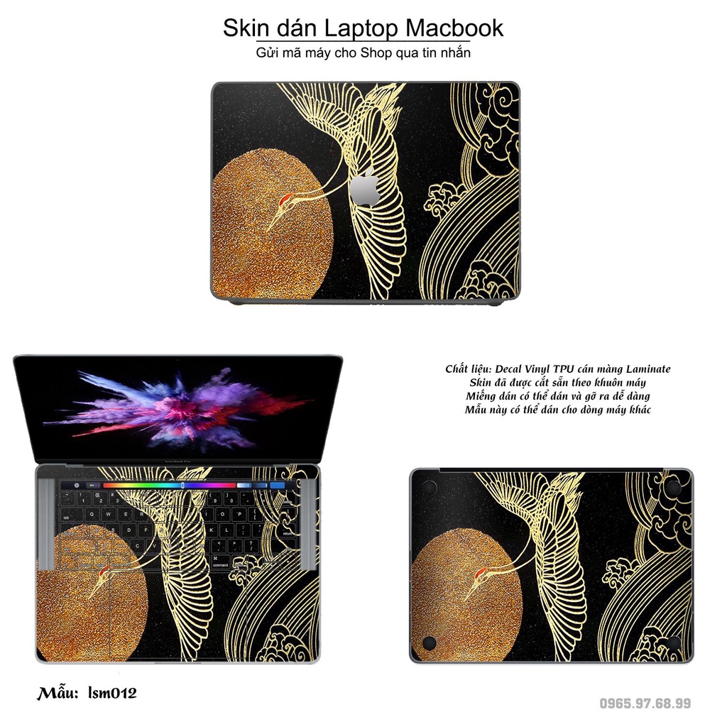 Máy tính & Laptop > Phụ Kiện Máy Tính > Miếng Dán & Ốp Laptop || Skin dán Macbook mẫu Chim Hạc Phù Tang - lsm012 (đã cắt sẵn, inbox mã máy cho shop)Còn hàng