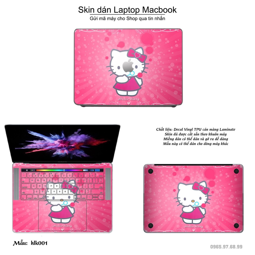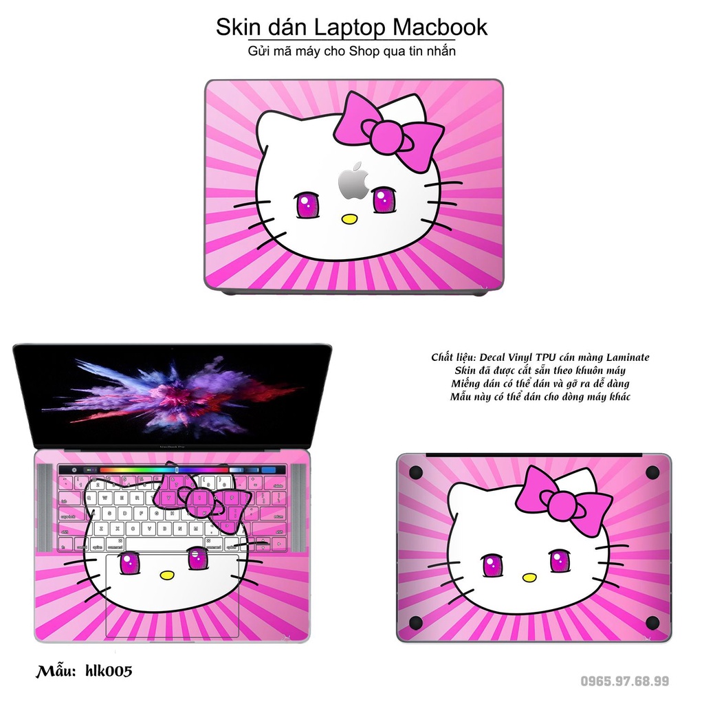 Skin dán Macbook mẫu Hello Kitty (đã cắt sẵn, inbox mã máy cho shop)