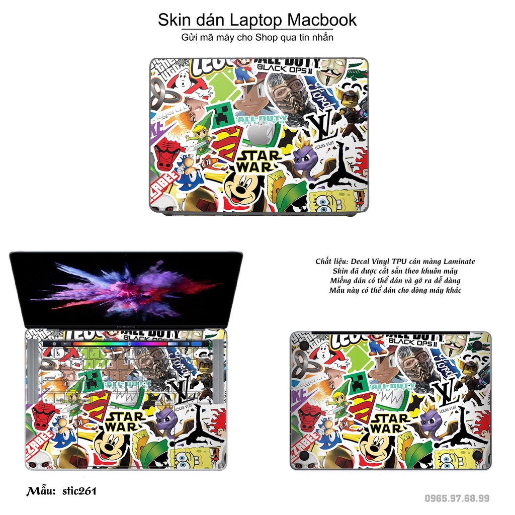 Máy tính & Laptop > Phụ Kiện Máy Tính > Miếng Dán & Ốp Laptop || Skin dán Macbook mẫu stickerbomb (đã cắt sẵn, inbox mã máy cho shop)Còn hàng