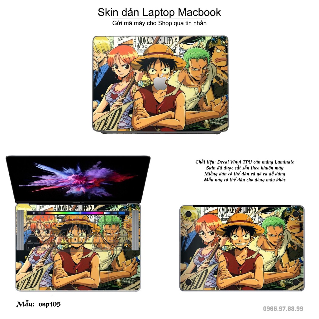 Skin dán Macbook mẫu One Piece (đã cắt sẵn, inbox mã máy cho shop)