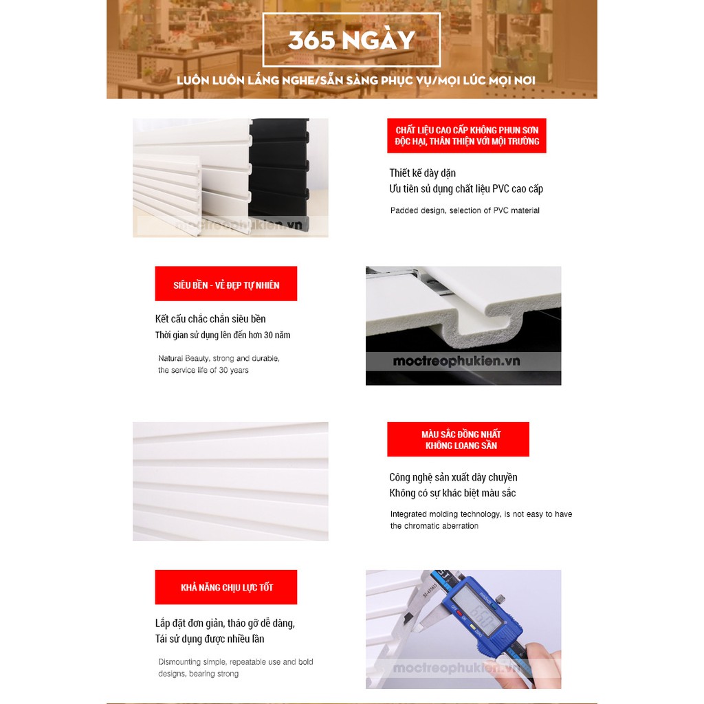 Tấm slatwall nhựa PVC lắp ghép ốp tường trưng bày hàng hóa phụ kiện (120cm*32cm)