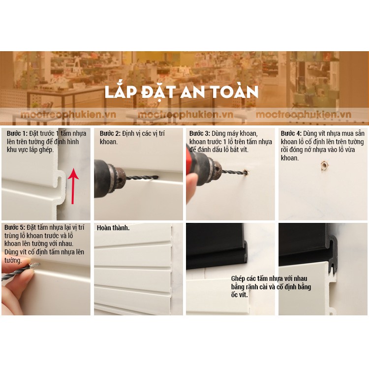 Sử dụng: Ghép các tấm lại với nhau, gắn lên tường trưng bày hàng hóa