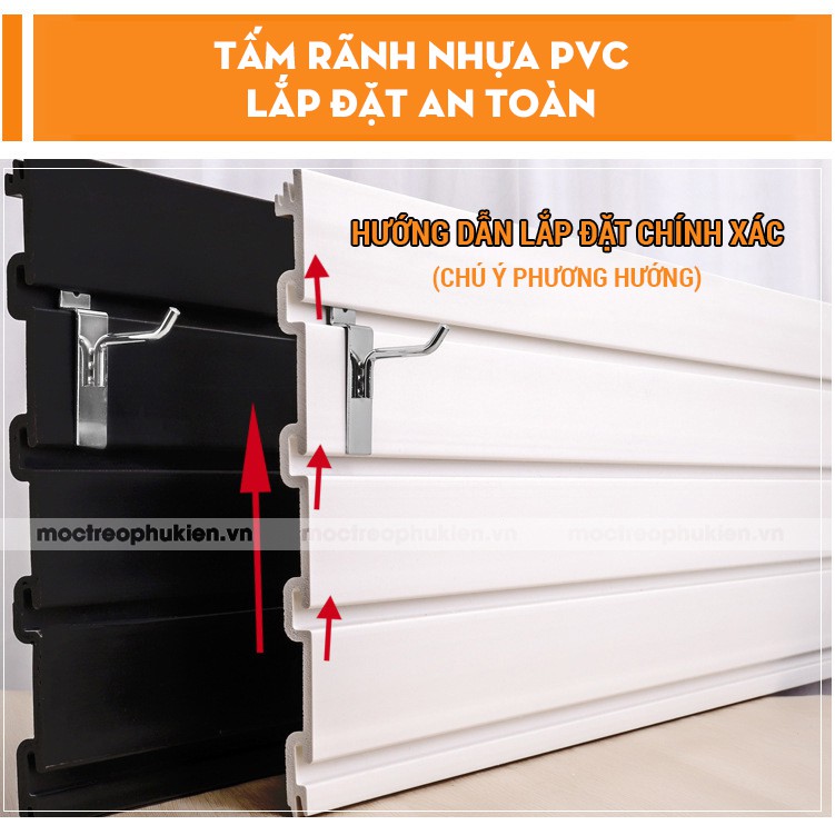 Tấm slatwall nhựa PVC lắp ghép ốp tường trưng bày hàng hóa phụ kiệnTấm rãnh nhựa PVC là vật liệu mới nhất hiện nay được làm bằng vật liệu polymer PVC thân thiện với môi trường và có tuổi thọ cao. Tấm rãnh nhựa PVC giúp trang trí hàng trưng bày đẹp hơn và sang trọng hơn.